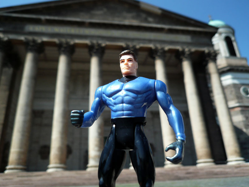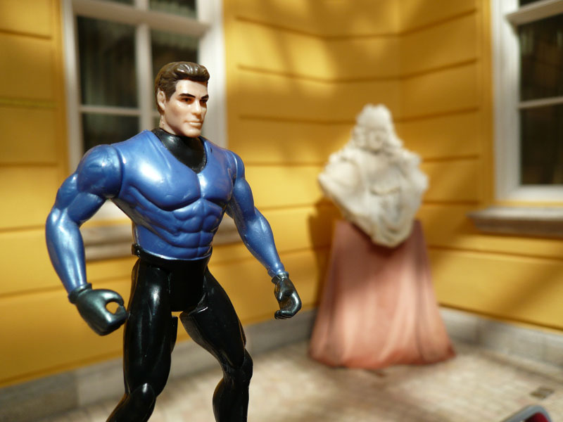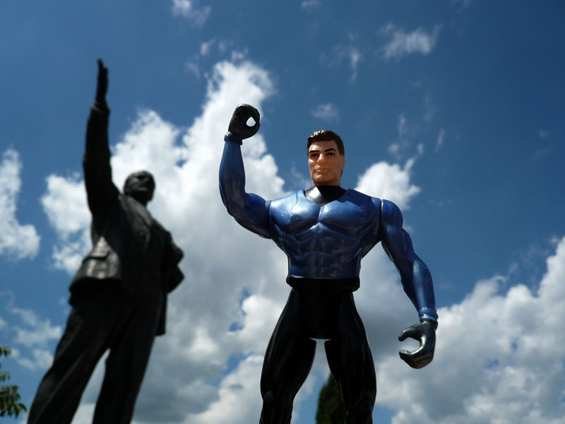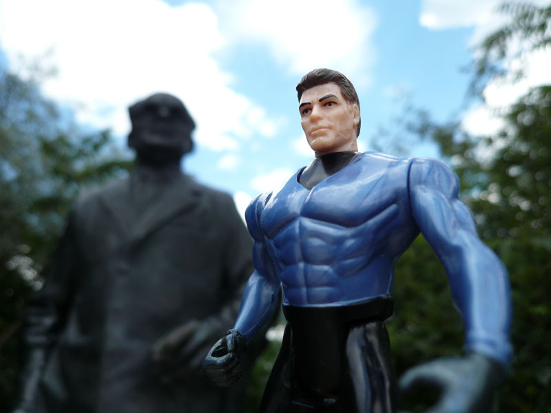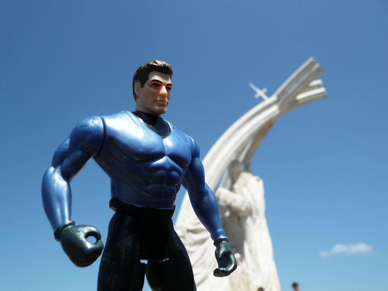 Au départ je comptais sur un Batman avec son masque et puis Thomas m’a donné un Batman sans masque, alors j’ai fait avec. Du coup il ne semble plus incarner le justicier que l’on connait, disons qu’il est parti en Hongrie pour une mission pas trop compliquée, presque des vacances…