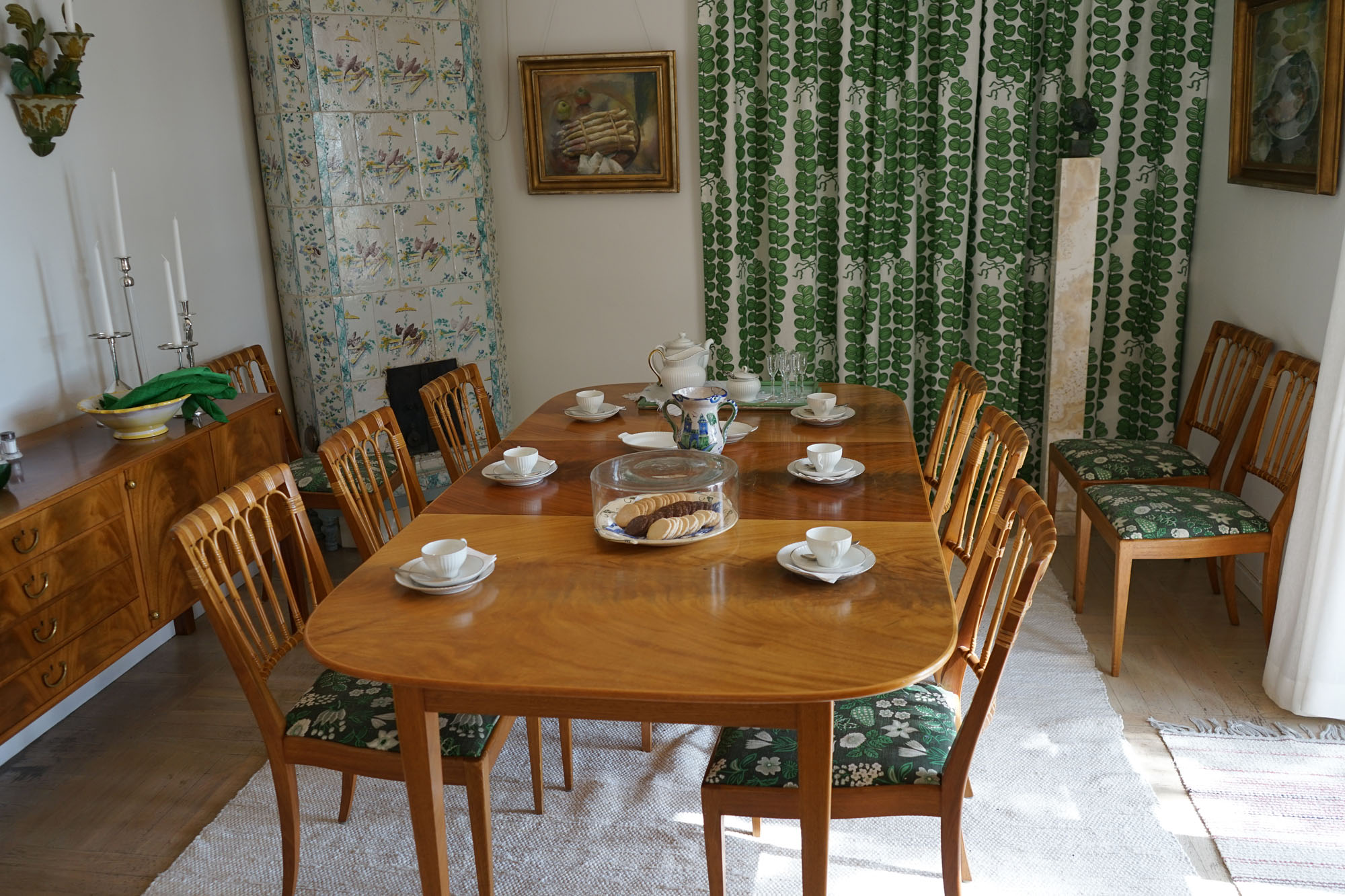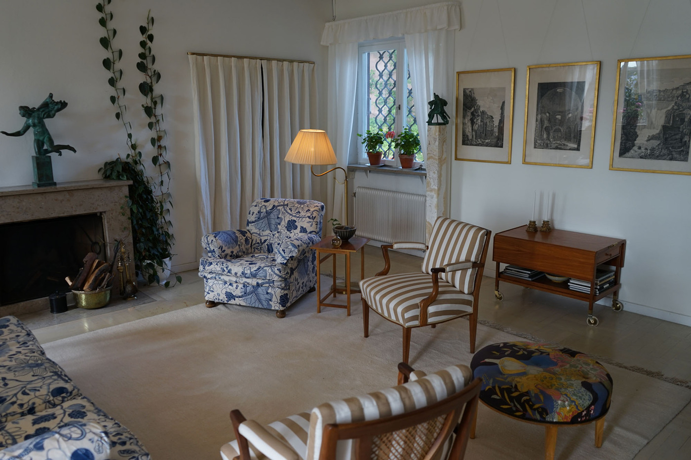Josef Frank (né en 1885 à Baden en Autriche et mort le 8 janvier 1967 à Stockholm) était un architecte austro-suédois. Il est considéré comme l’un des fondateurs du design moderne suédois. L’incompréhension initialement portée à l’égard de sa conception d’un modernisme humain, le poussera à quitter Vienne en 1934, pour s’établir en Suède, où ses travaux devinrent pleinement reconnus. Le Millesgården à Stockholm lui consacra une belle exposition de tissus et d’aquarelles. Carles Milles lui avait demandé de meubler sa demeure.