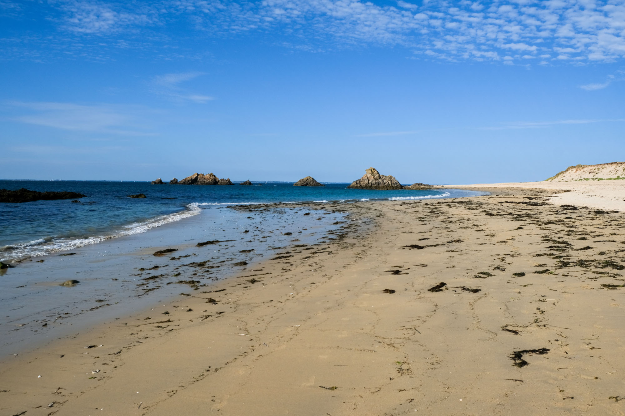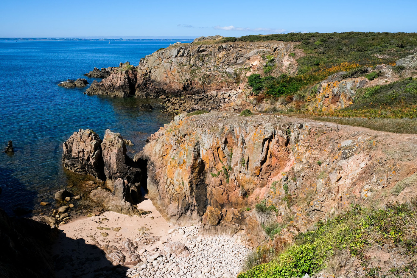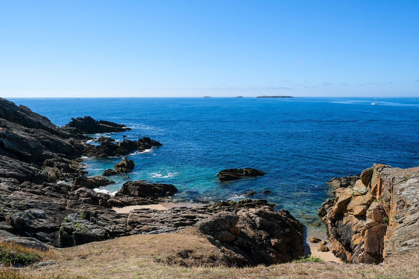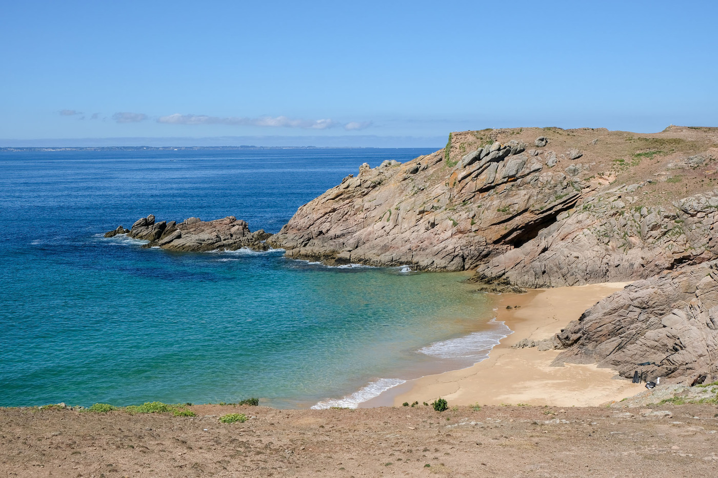– les deux tiers ouest, qui sont un ultime vestige perdu en mer des crêtes autrefois élevées du Massif armoricain. La côte y est particulièrement déchirée, en particulier au Sud, résultat des assauts perpétuels de l’océan.