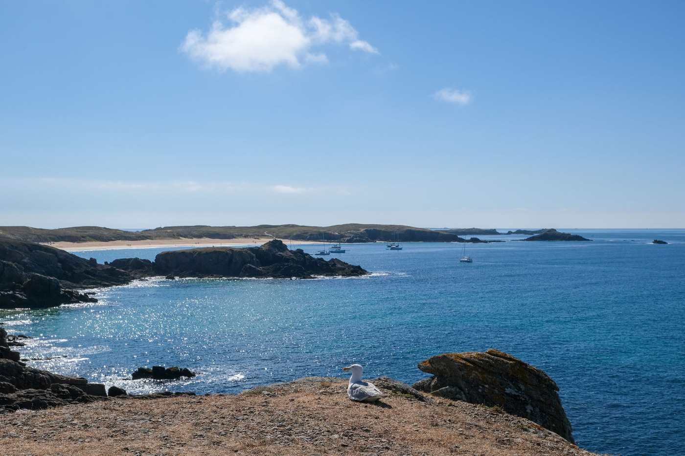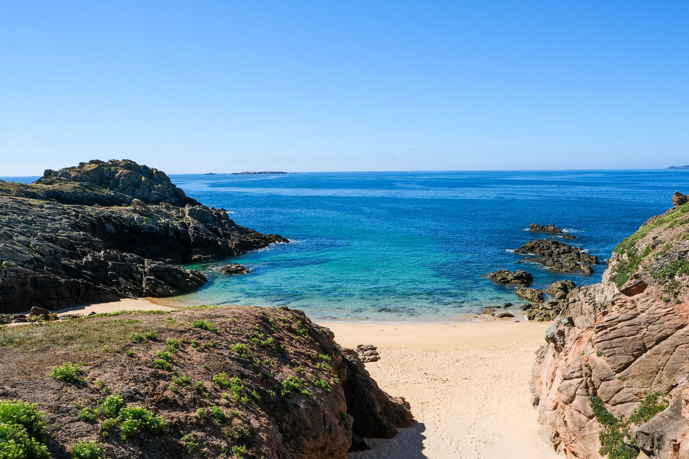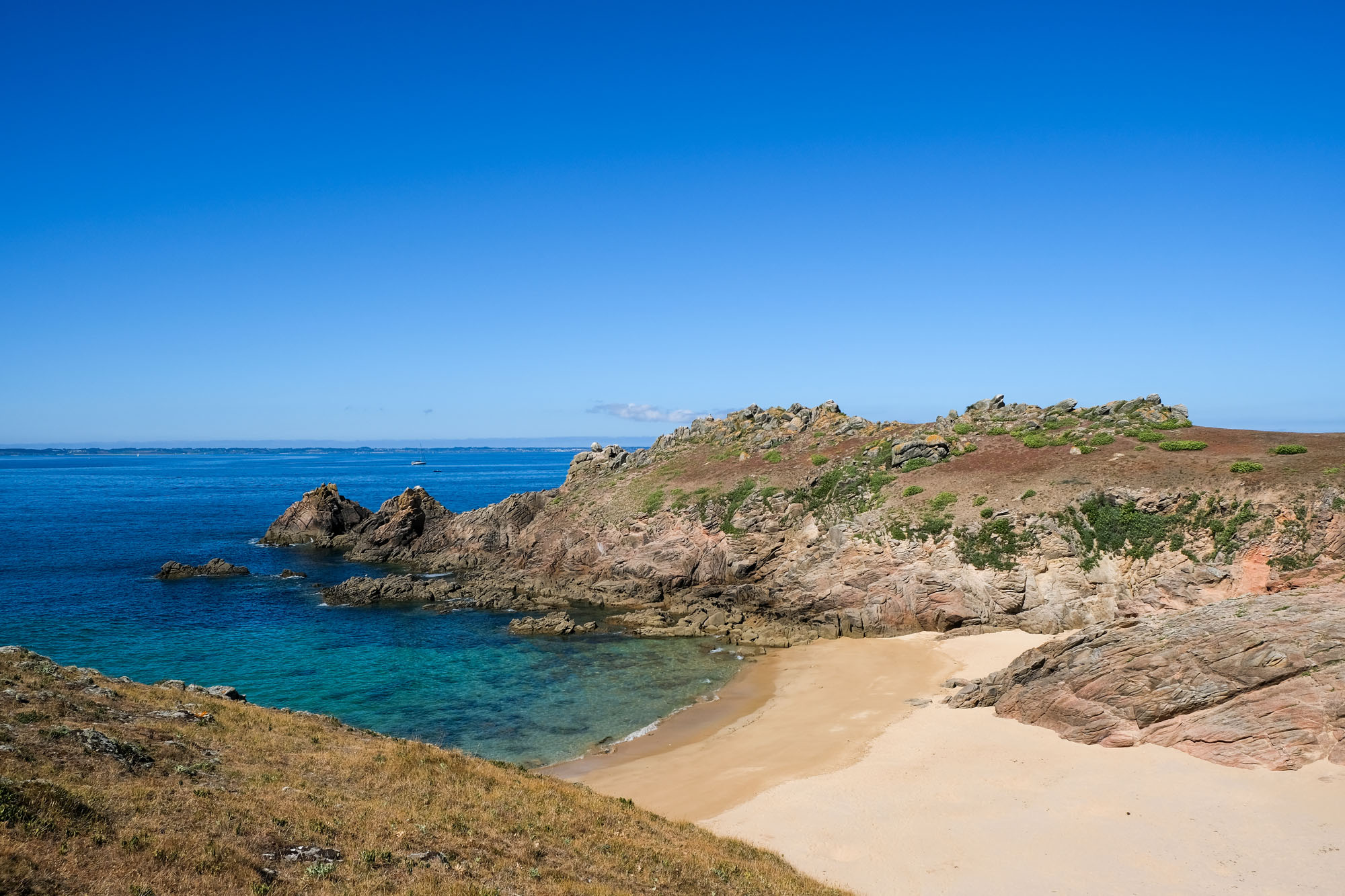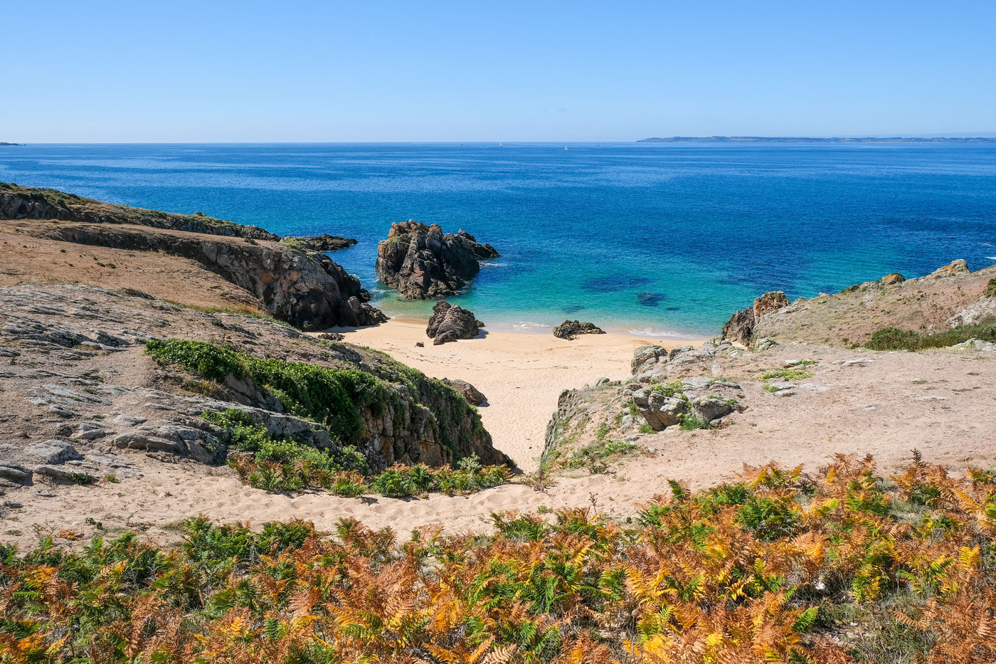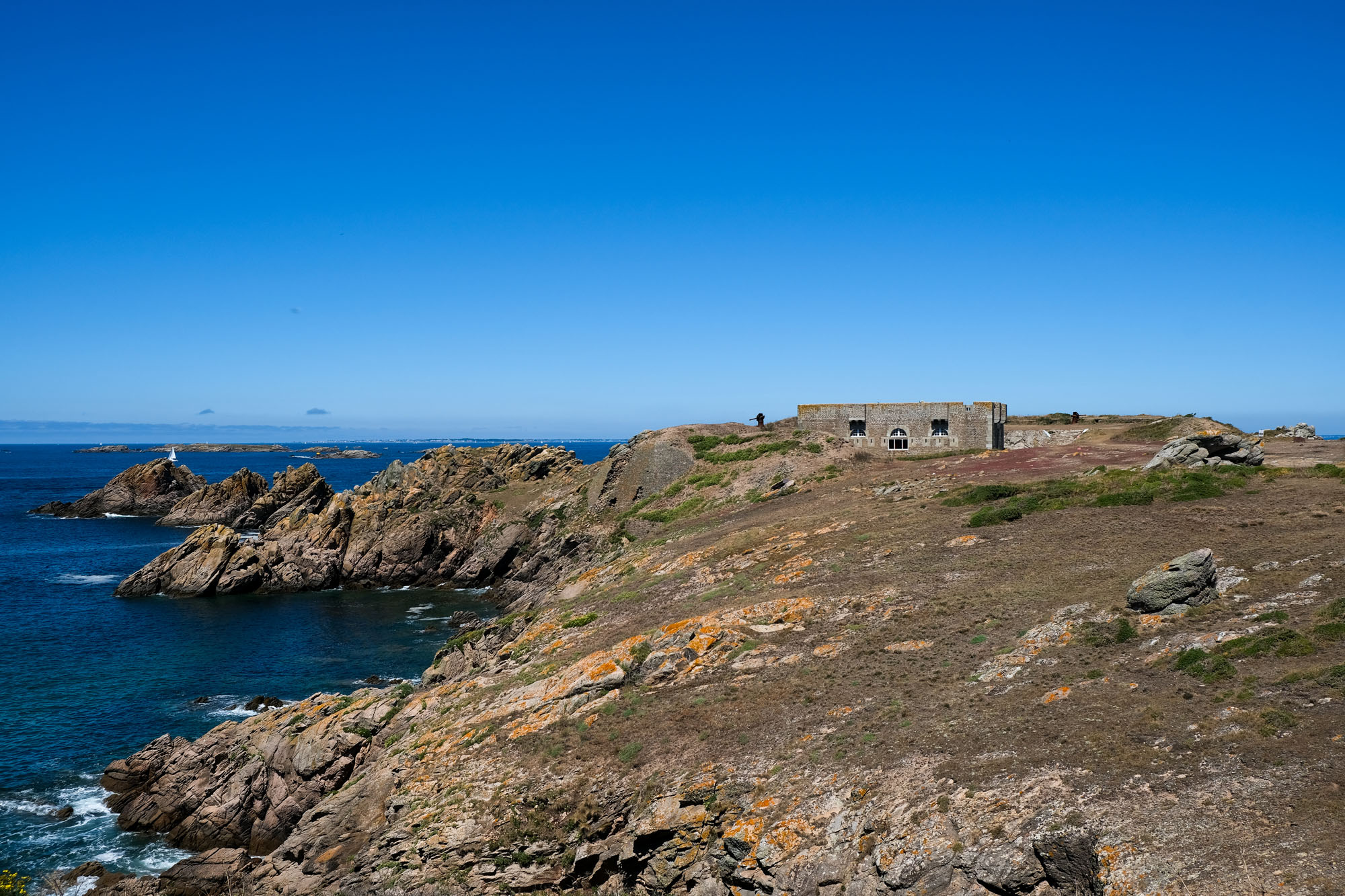 – les deux tiers ouest, qui sont un ultime vestige perdu en mer des crêtes autrefois élevées du Massif armoricain. La côte y est particulièrement déchirée, en particulier au Sud, résultat des assauts perpétuels de l’océan.