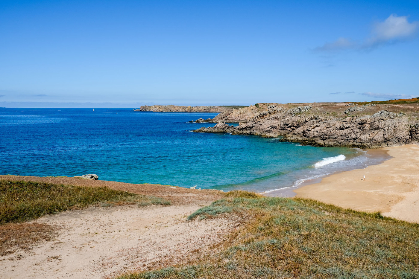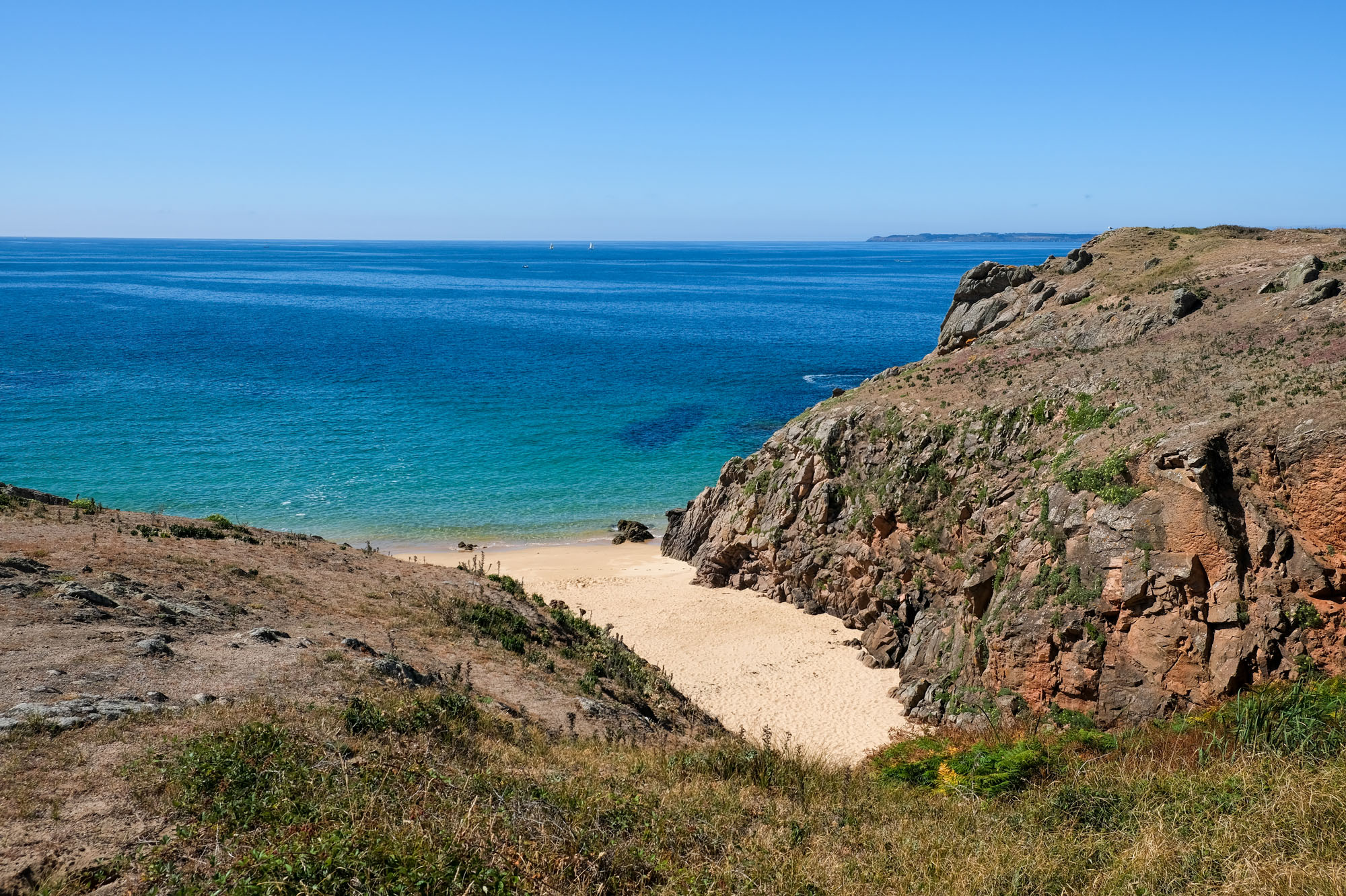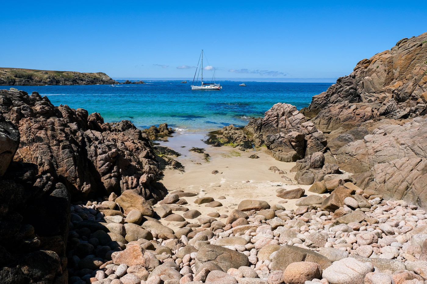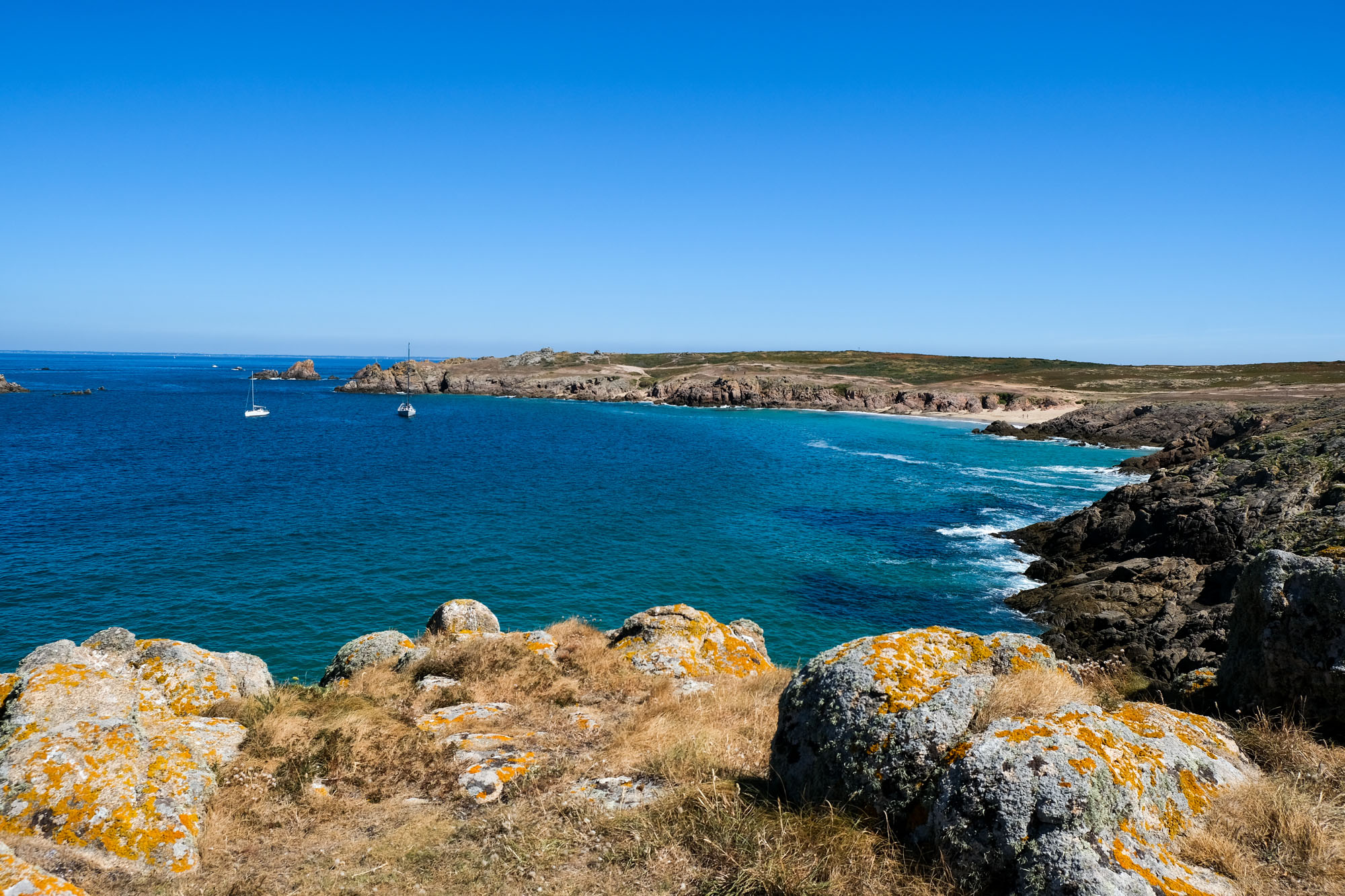 – les deux tiers ouest, qui sont un ultime vestige perdu en mer des crêtes autrefois élevées du Massif armoricain. La côte y est particulièrement déchirée, en particulier au Sud, résultat des assauts perpétuels de l’océan.