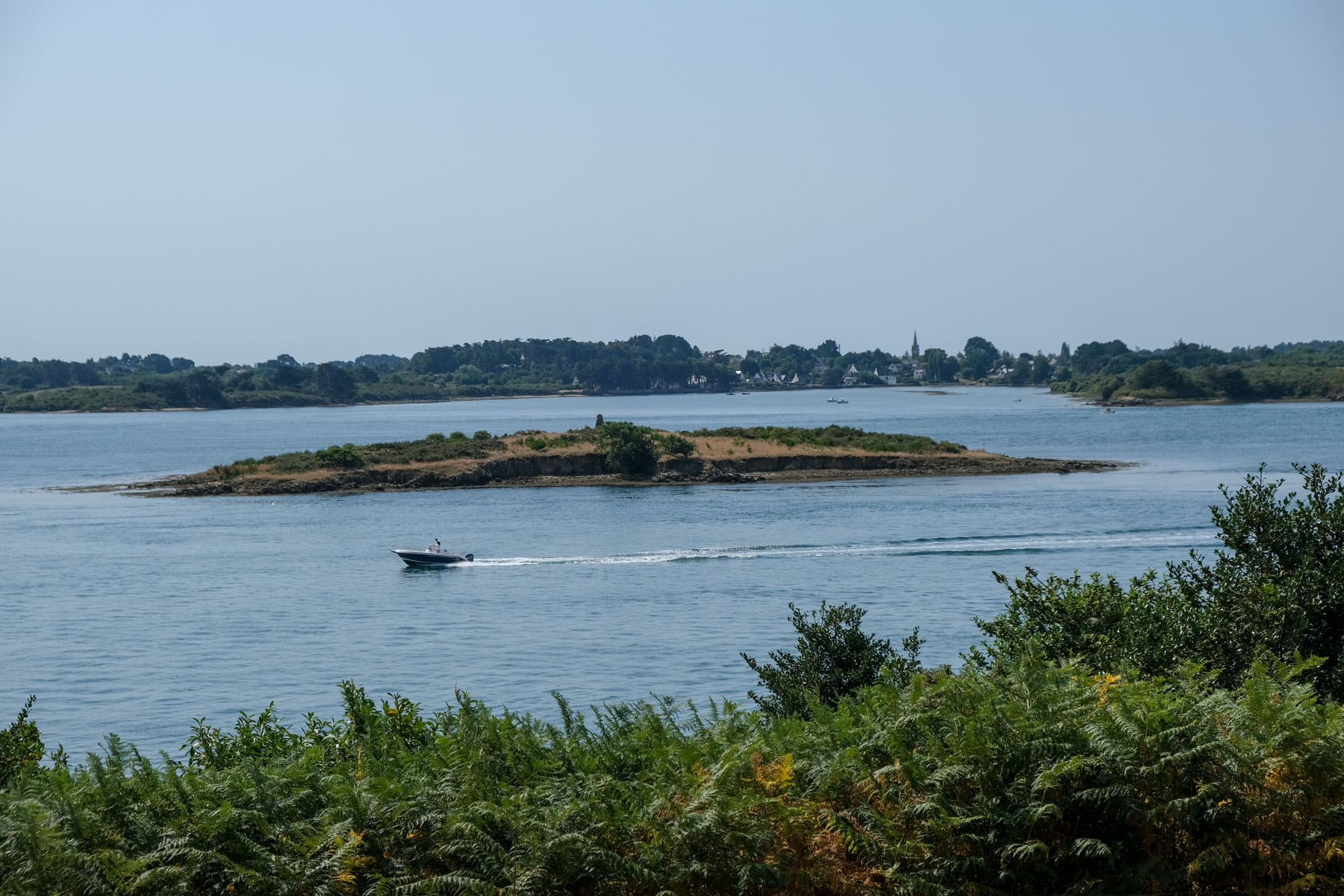 L’île de Gavrinis est située non loin de l’ouverture du Golfe du Morbihan sur la haute mer, à dix minutes en bateau du port de Larmor-Baden, dans le golfe du Morbihan. Il n’y a pas de bourg sur ce rocher granitique de 750 m de long et 400 m de large, soit 30 hectares environ. Le point culminant de l’île domine tous les environs. L’île est partagée en deux parties : l’une, au sud, appartient au département du Morbihan et l’autre, au nord, est une propriété privée. Source : Wikipédia