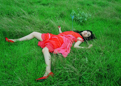 Mais d’où vient cette étrange attraction vers le morbide qui nous pousse à tourner les pages du livre de Izima Kaoru intitulé, Landscapes with a Corpse en français, "paysages avec un cadavre" ? Le jeu pour le lecteur, consiste à scruter un paysage pris en photo de loin pour y découvrir le cadavre d’une femme dans un plan plus rapproché, l’image ne laisse alors aucun doute, elle a souvent le corps désarticulé d’un pantin, parfois on aperçoit des traces de sang ou l’impact d’une balle. Par miracle la victime a toujours les yeux grands ouverts en direction d’un point de fuite qui nous échappe. Le visage de ces femmes n’est jamais traversé par un rictus d’horreur, il repose en paix.