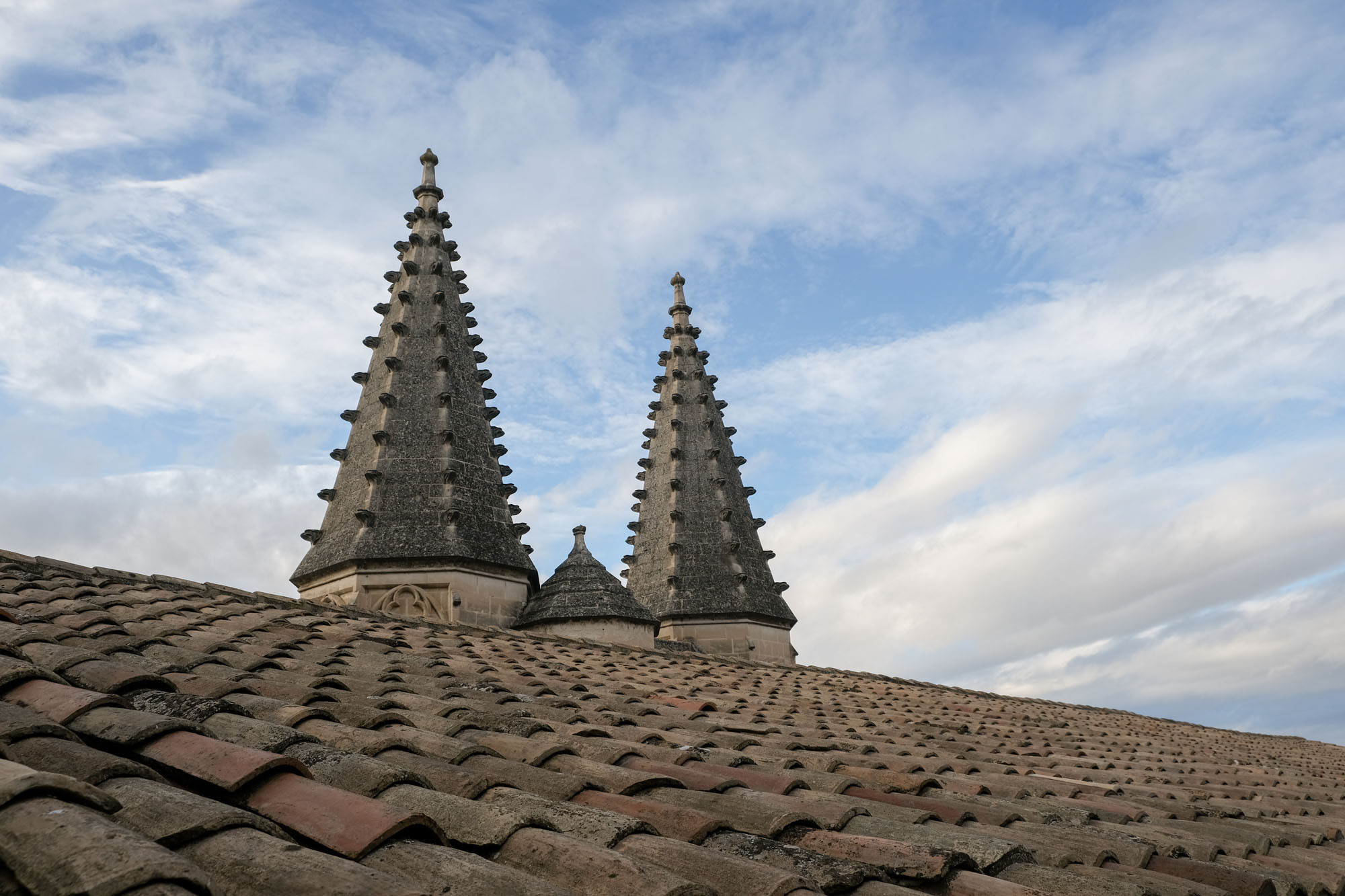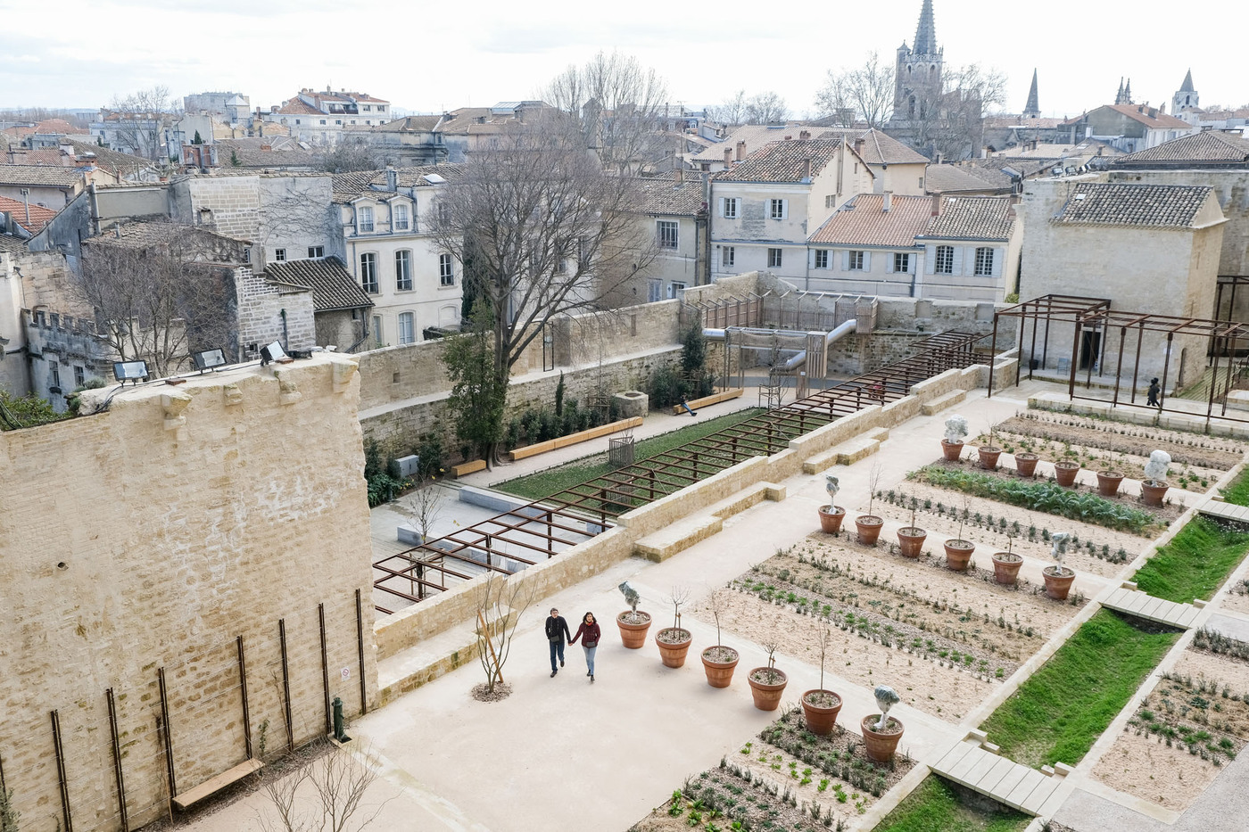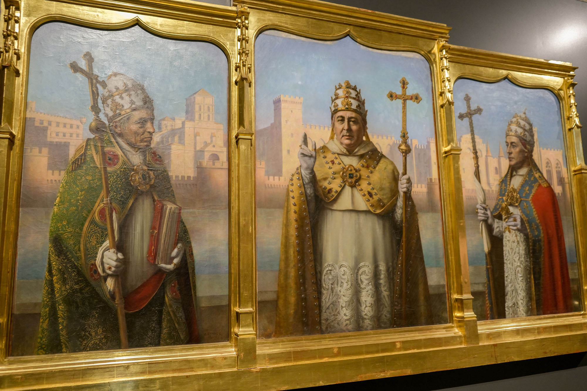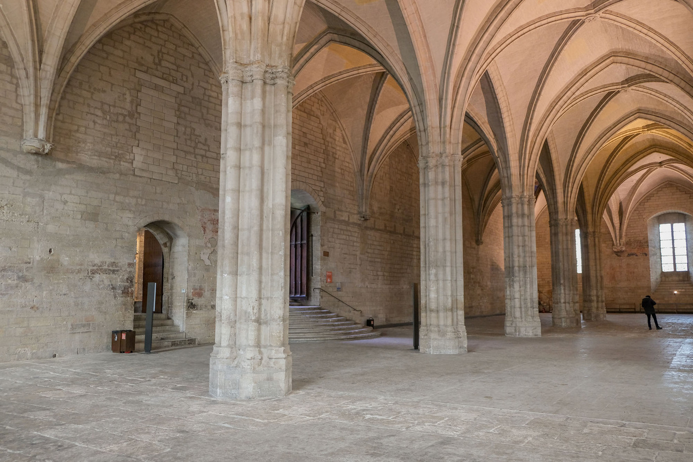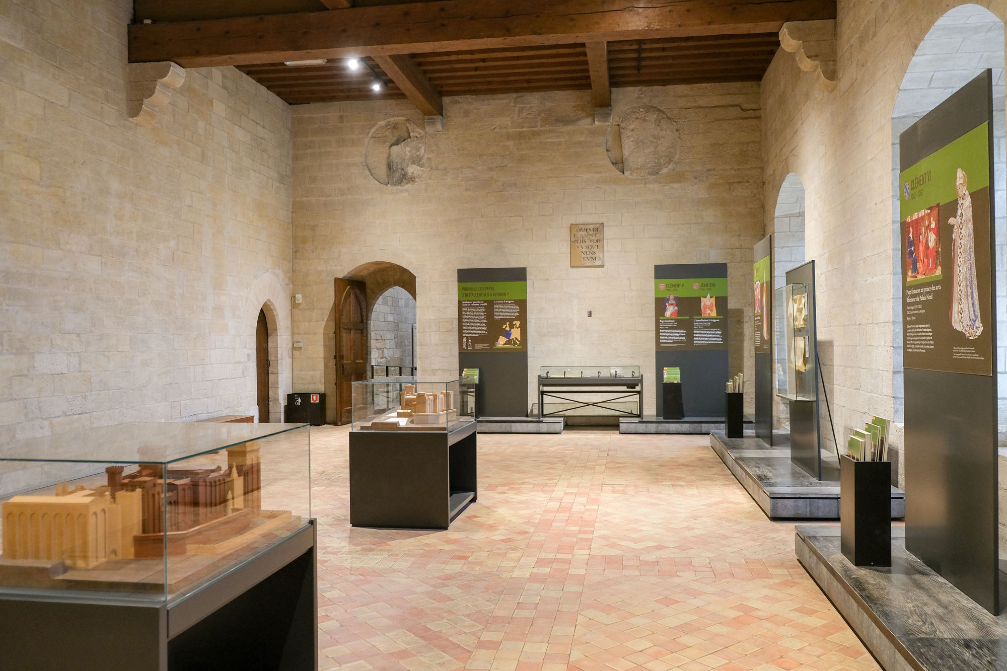 Le Palais des papes d’Avignon est la plus grande des constructions gothiques du Moyen Âge. À la fois forteresse et palais, la résidence pontificale fut pendant le XIVe siècle le siège de la chrétienté d’Occident. Le palais, qui est l’imbrication de deux bâtiments, le palais vieux de Benoît XII, véritable forteresse assise sur l’inexpugnable rocher des Doms, et le palais neuf de Clément VI, le plus fastueux des pontifes avignonnais. Il est le fruit, pour sa construction et son ornementation, du travail conjoint des meilleurs architectes français, Pierre Peysson et Jean de Louvres, dit de Loubières, et des plus grands fresquistes de l’école siennoise, Simone Martini et Matteo Giovanetti. Source : Wikipédia