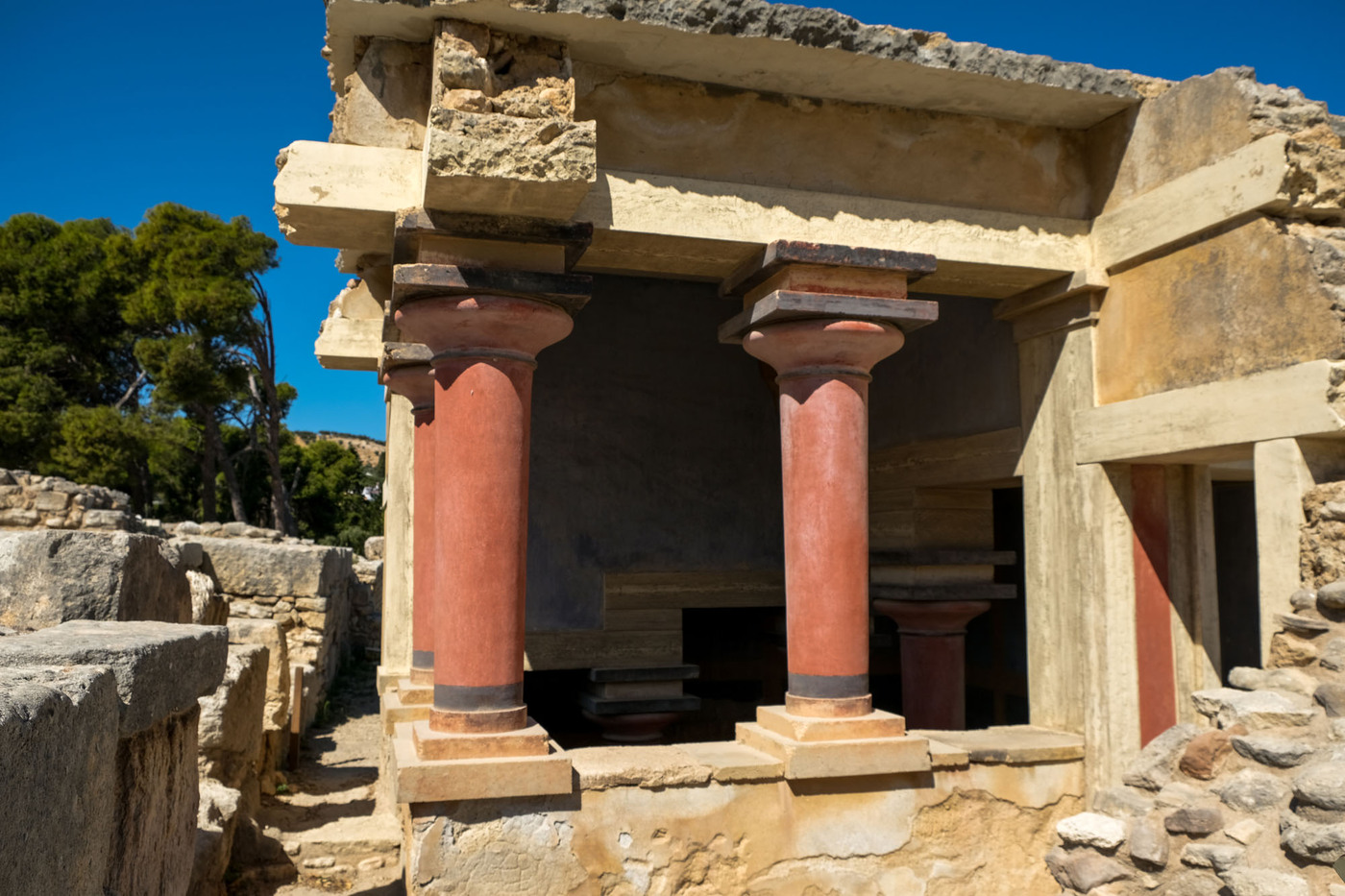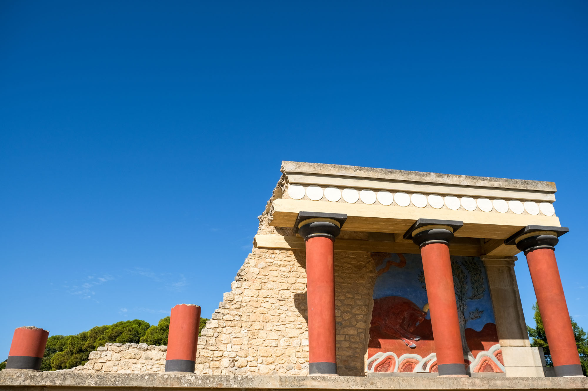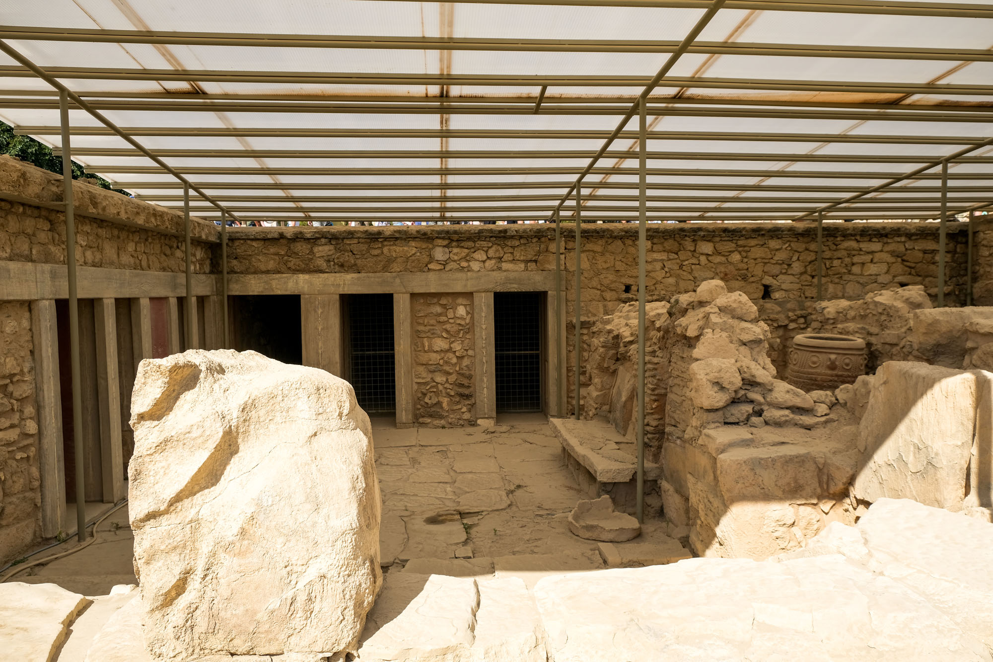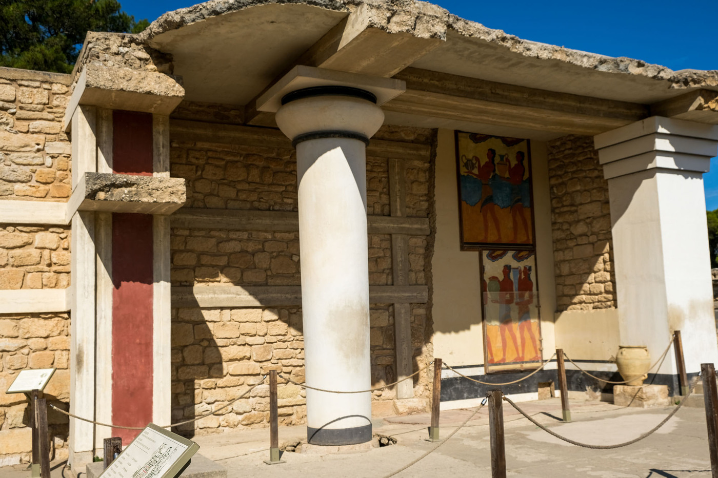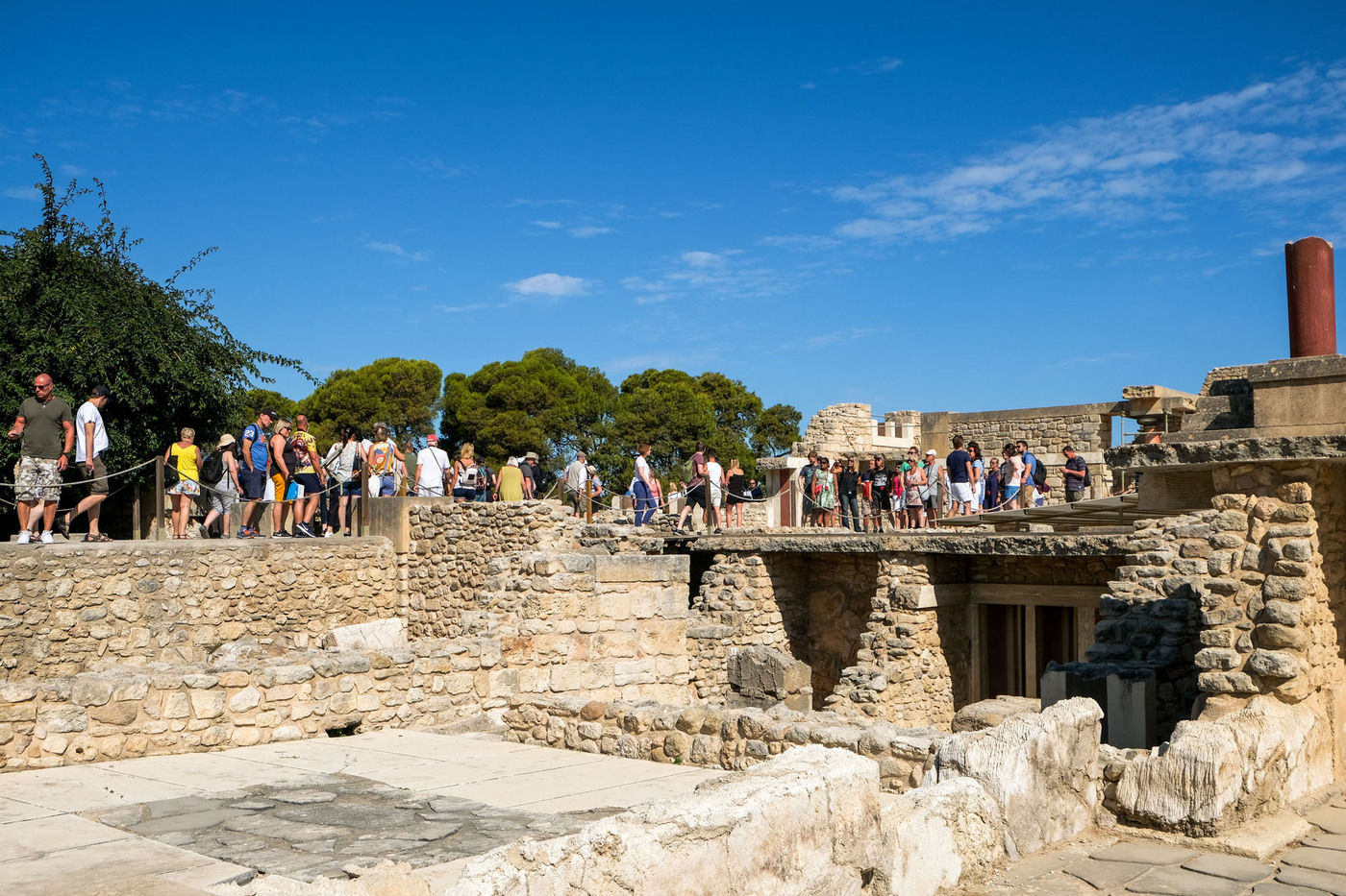 C’est le plus important des palais minoens crétois depuis sa découverte en 1878. Associé à la légende du palais du roi Minos, le site, occupé depuis 7000 av. J.-C., fut la capitale de la Crète lors de la période minoenne. Les ruines de Cnossos ont été découvertes en 1878 par un antiquaire crétois, Minos Kalokairinos. Il a conduit les premières fouilles, mettant au jour des magasins dans l’aile ouest du palais, ainsi que des éléments de façades. Le 16 mars 1900, un archéologue britannique, Arthur Evans, achète l’ensemble du site et entame des fouilles de grande envergure. La fouille et la restauration de Cnossos, ainsi que la découverte de la civilisation qu’il a lui-même appelée minoenne, du nom du roi légendaire Minos, sont inséparables de la personne d’Evans. Source : Wikipédia