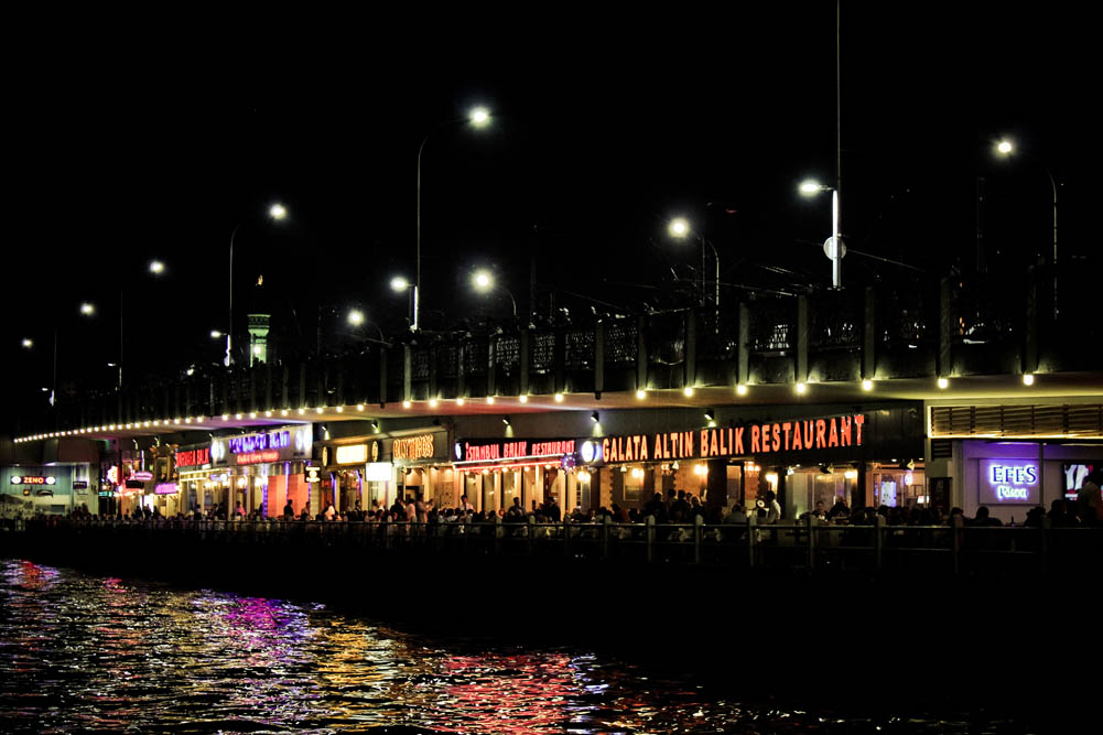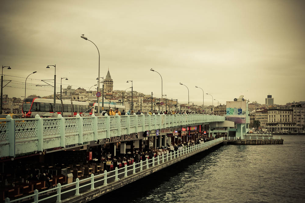 Cette cinquième version du pont de Galata qui enjambe la Corne d’or, a été mise en service en décembre 1994. Au-dessus cohabitent les piétons avec les voitures et le tramway. De jour comme de nuit des pécheurs s’agglutinent à la rambarde. Dessous ce sont les restaurateurs qui alpaguent les passants.