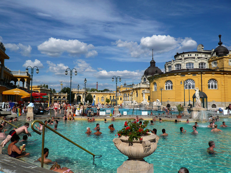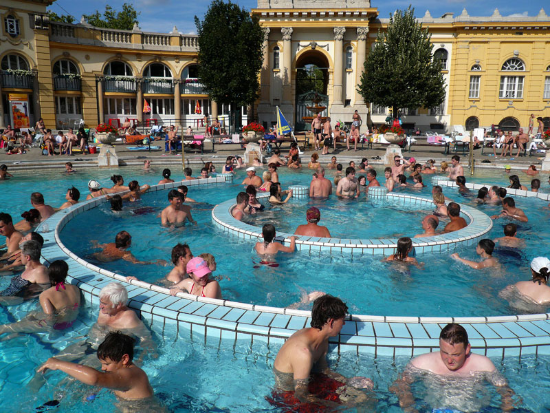 La ville de Budapest est réputée pour son activité thermale. Avec un débit journalier de 70 millions de litres d’eau, de 21 à 78 °C, qui proviennent 118 sources et puits, on ne peut résister, été comme hiver à fréquenter ces lieux de détente. Ici les bains Lukács (assez rustiques) et les bains Széchenyi (agréables mais avec beaucoup de touristes).