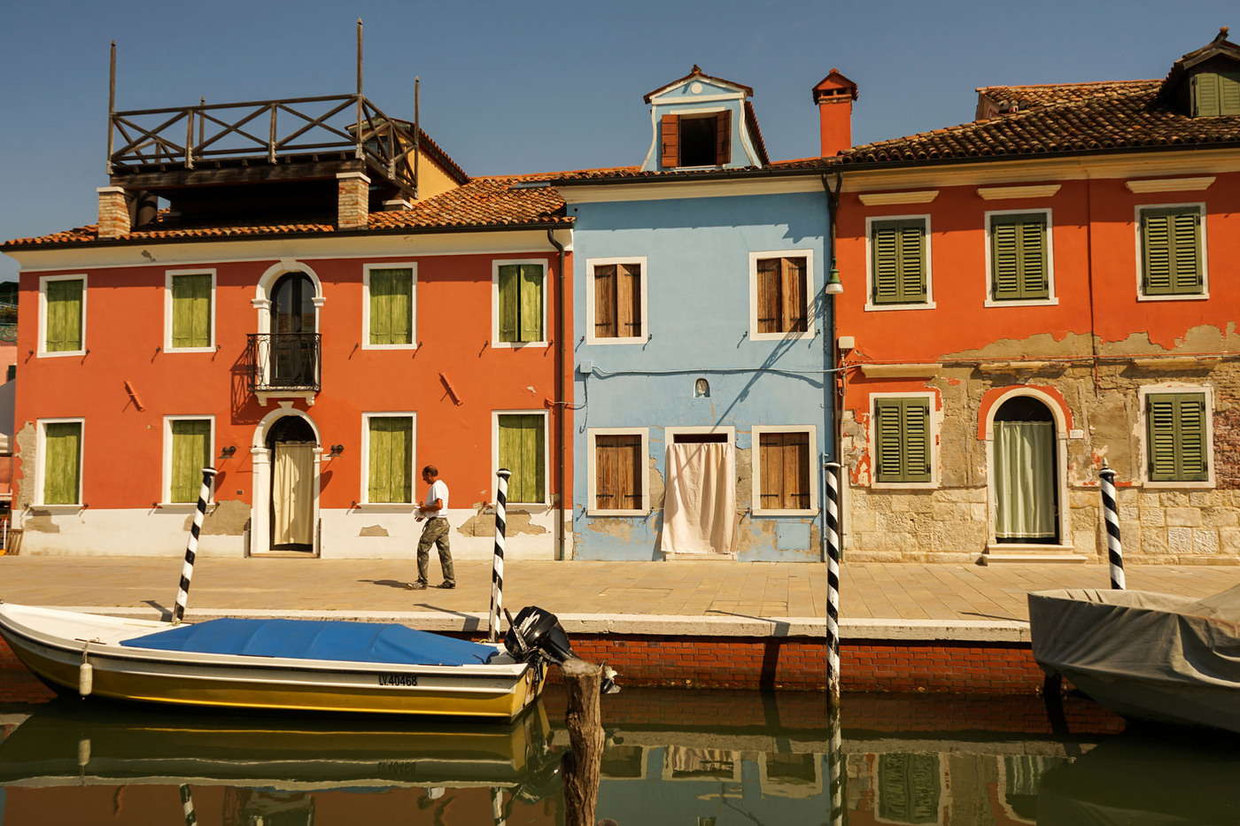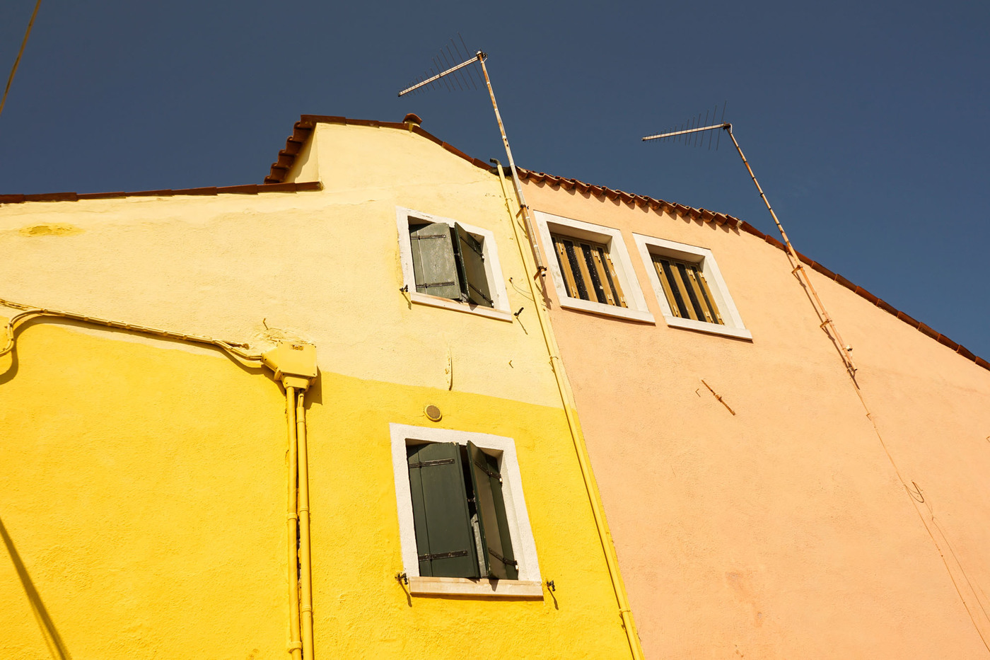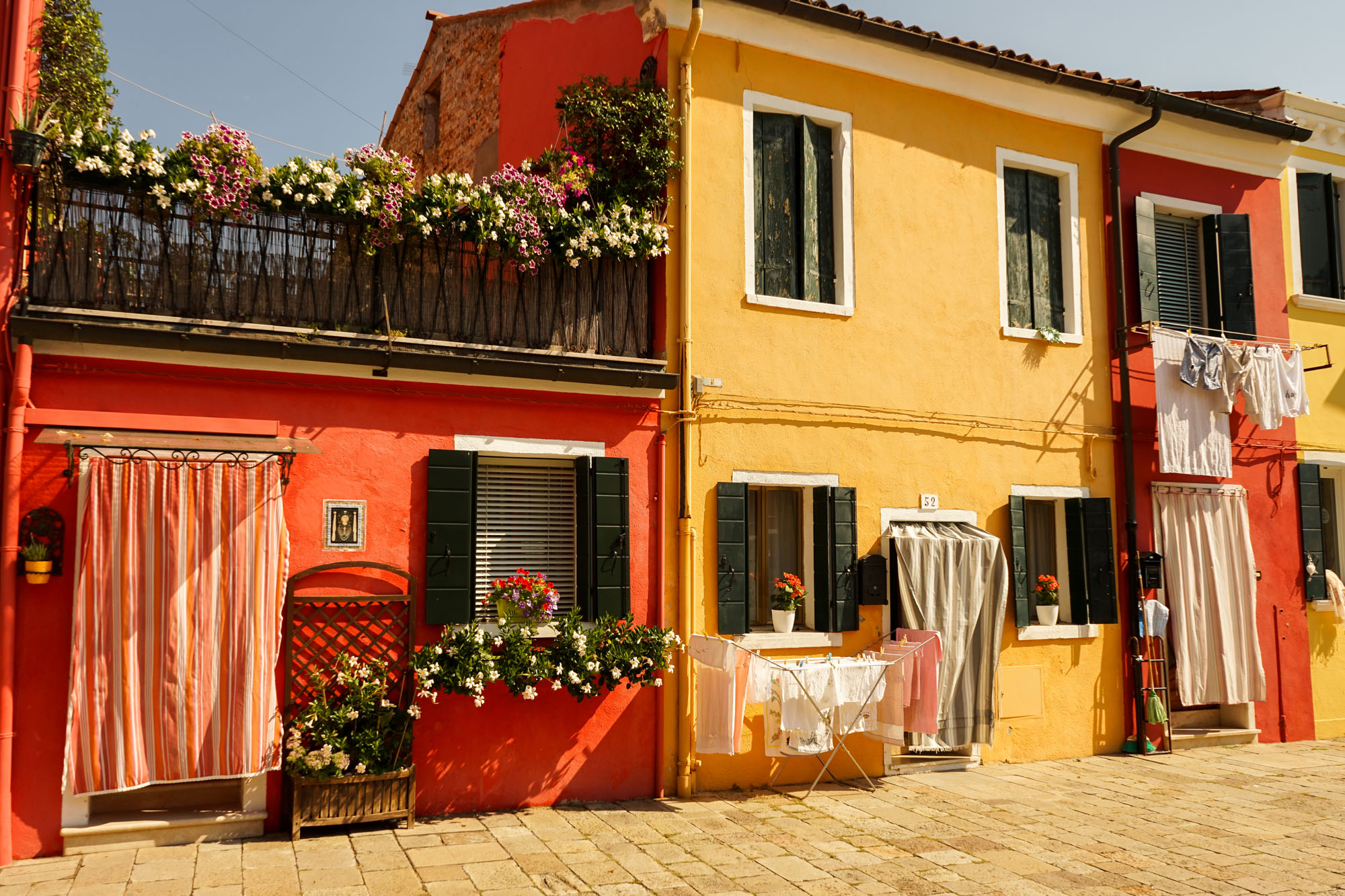 Burano est réputée pour ses petites maisons peintes de couleurs vives. À l’origine, les pêcheurs peignaient leur maison de différentes couleurs pour se repérer et reconnaître leur maison en cas de brume (dans cette région le brouillard est particulièrement dense, surtout en hiver). Aujourd’hui encore, les habitants ont l’obligation de repeindre leur maison une fois par an de cette même couleur. Source Wikipedia