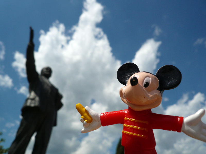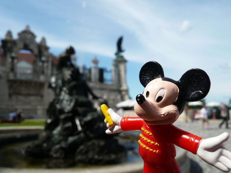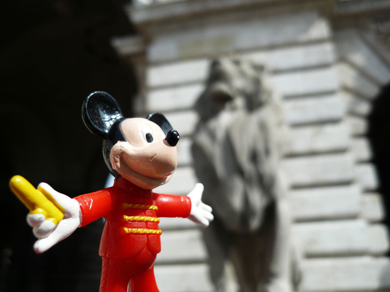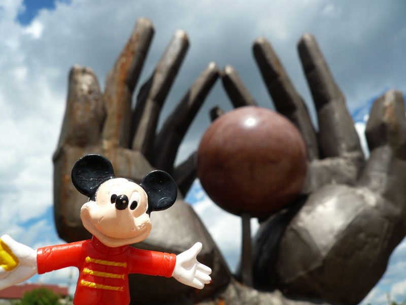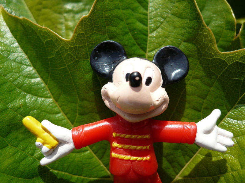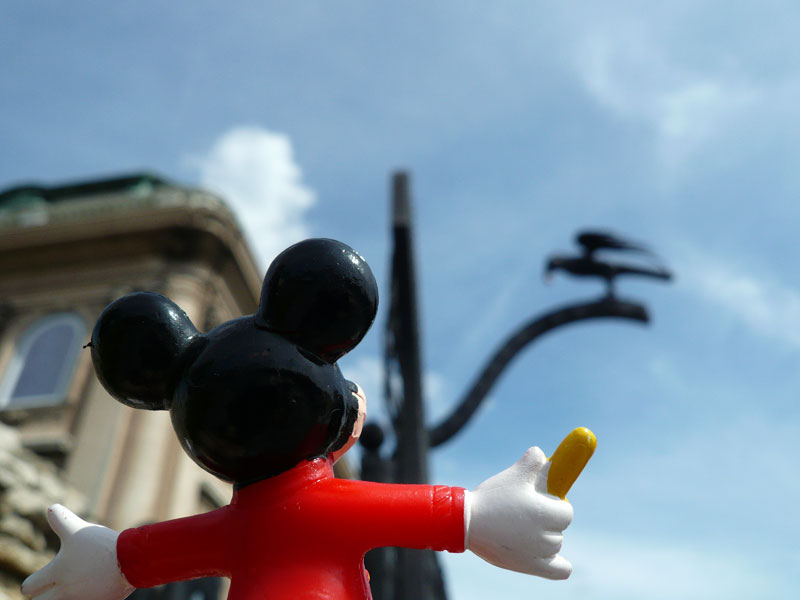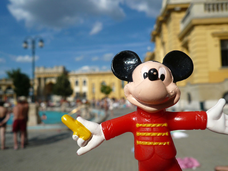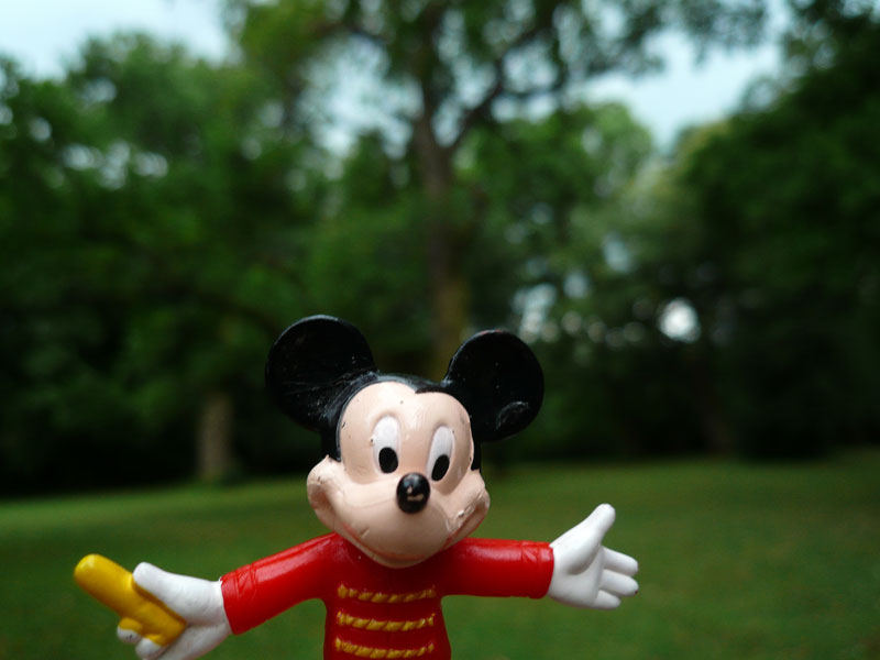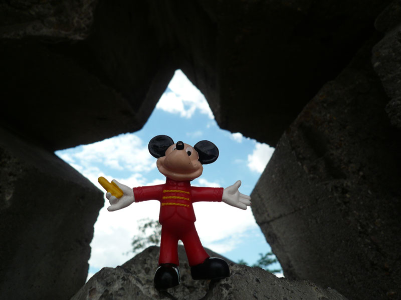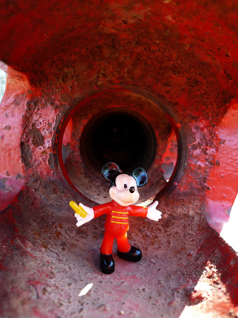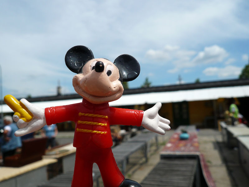 J’ai acheté un Mickey pour quelques centimes d’euros au Marché aux puces d’Ecseri à Budapest. Il faut dire qu’il n’est pas très beau quand on le regarde de près. Il a le visage ravagé, le bout du nez usé mais avec son costume de dompteur il a tout de même belle allure de loin.