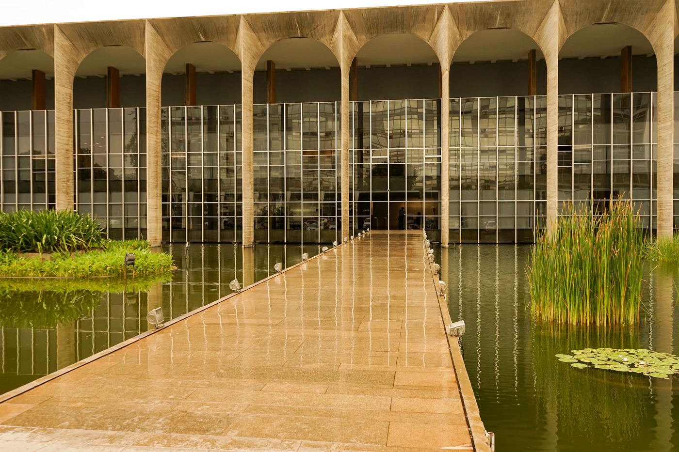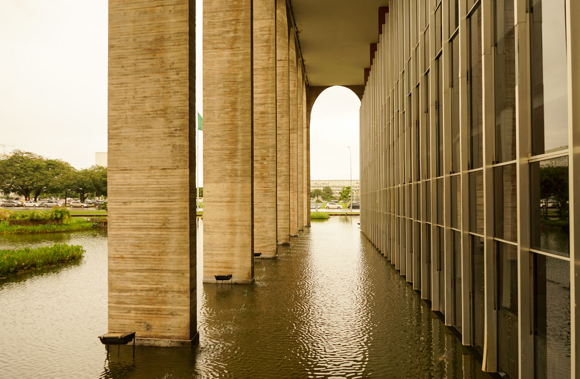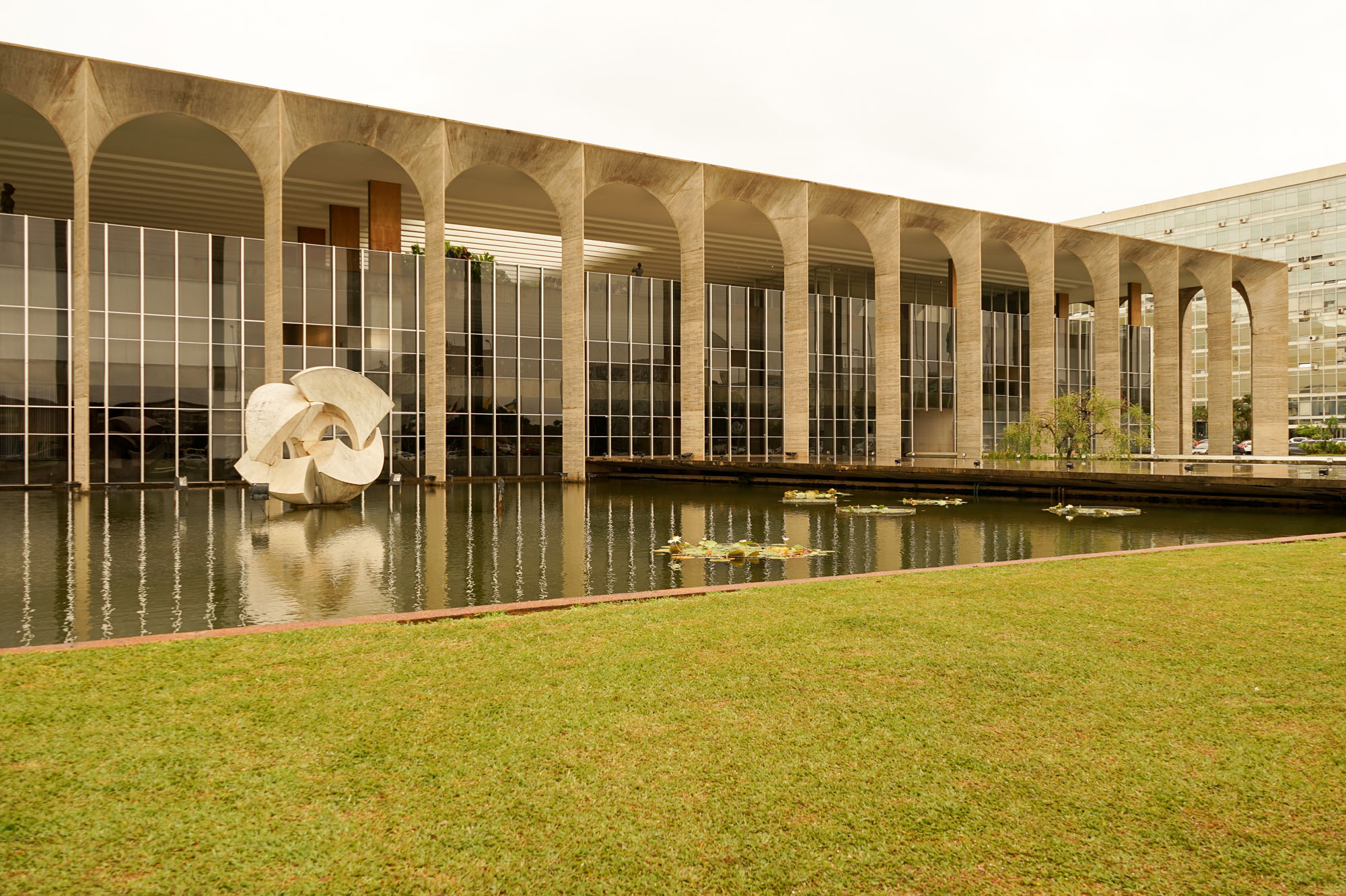 Le palais d’Itamaraty, appelé également le palais des arches abrite le siège du ministère des relations extérieures du Brésil. Sa conception est due à l’architecte Oscar Niemeyer et à l’ingénieur Joaquim Cardoso. Ce palais est entouré d’un plan d’eau, dans lequel se reflète la façade. L’intérieur contient de nombreuses décorations murales d’artistes renommés. Il dispose d’un immense hall de 2800 m2 sans colonnes. L’arrangement paysagiste interieur et extérieur est l’œuvre de Roberto Burle Marx. Au dessus du plan d’eau se trouve une sculpture blanche intitulée "Météore" de Bruno Giorgi.