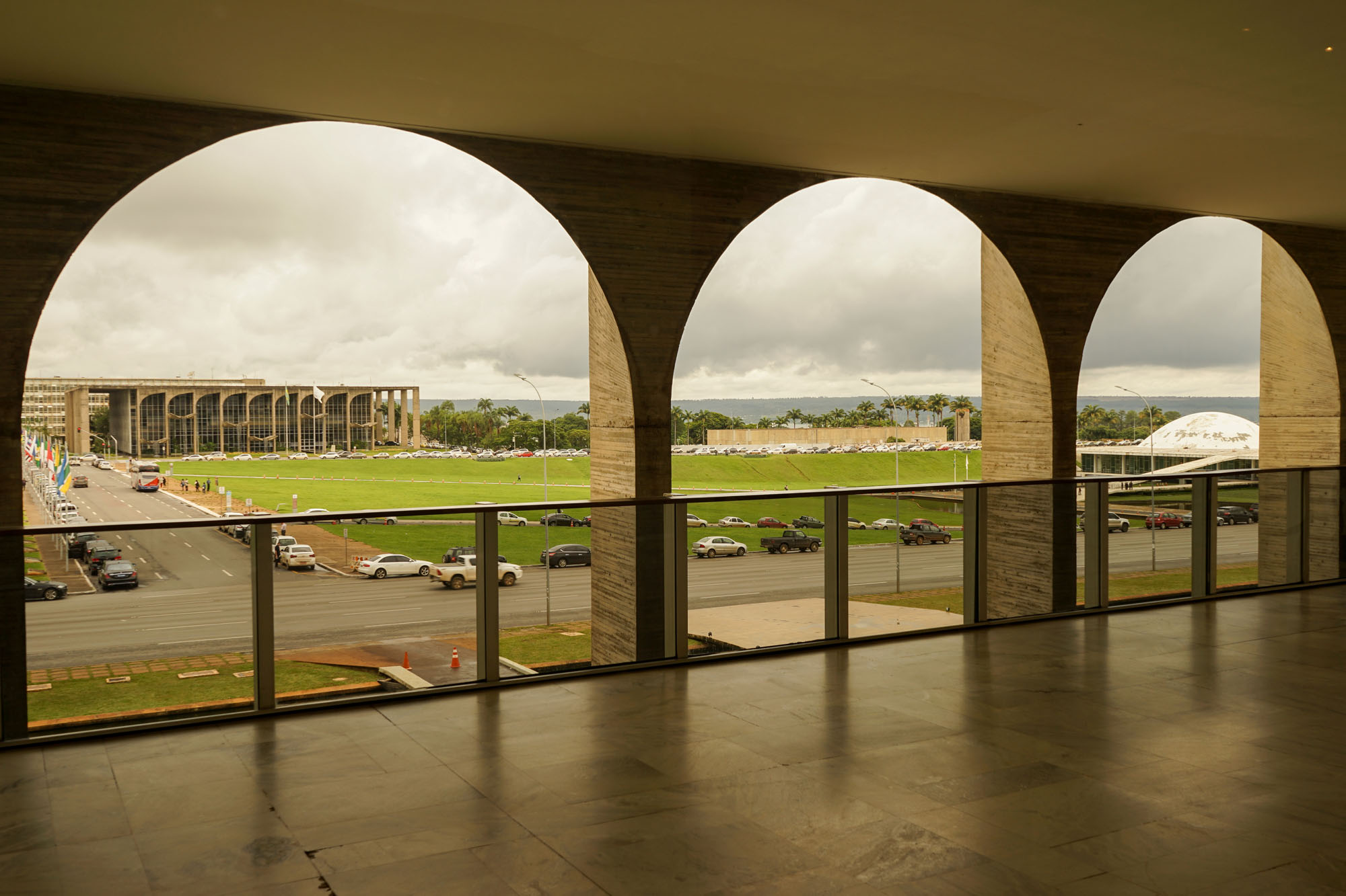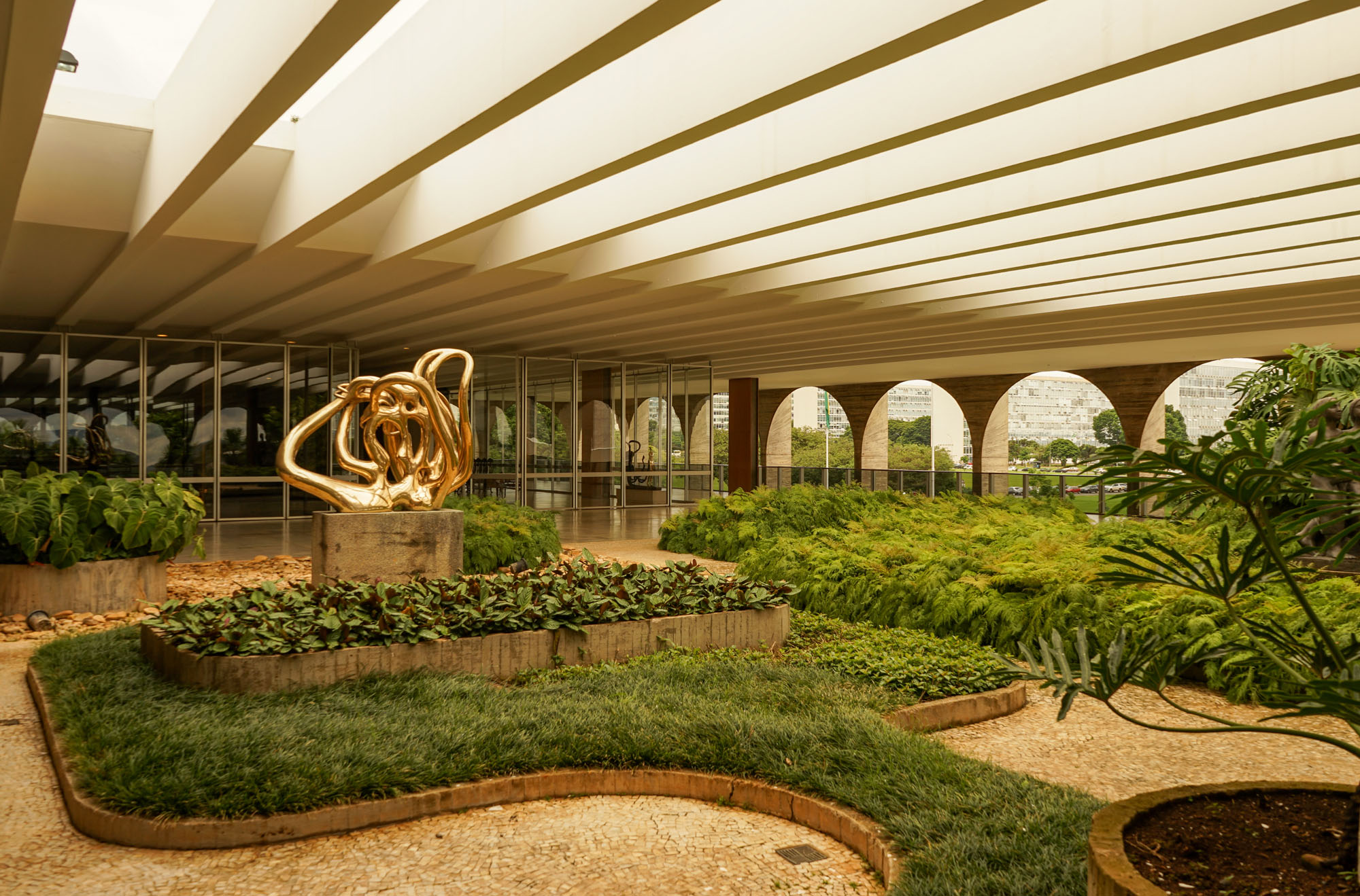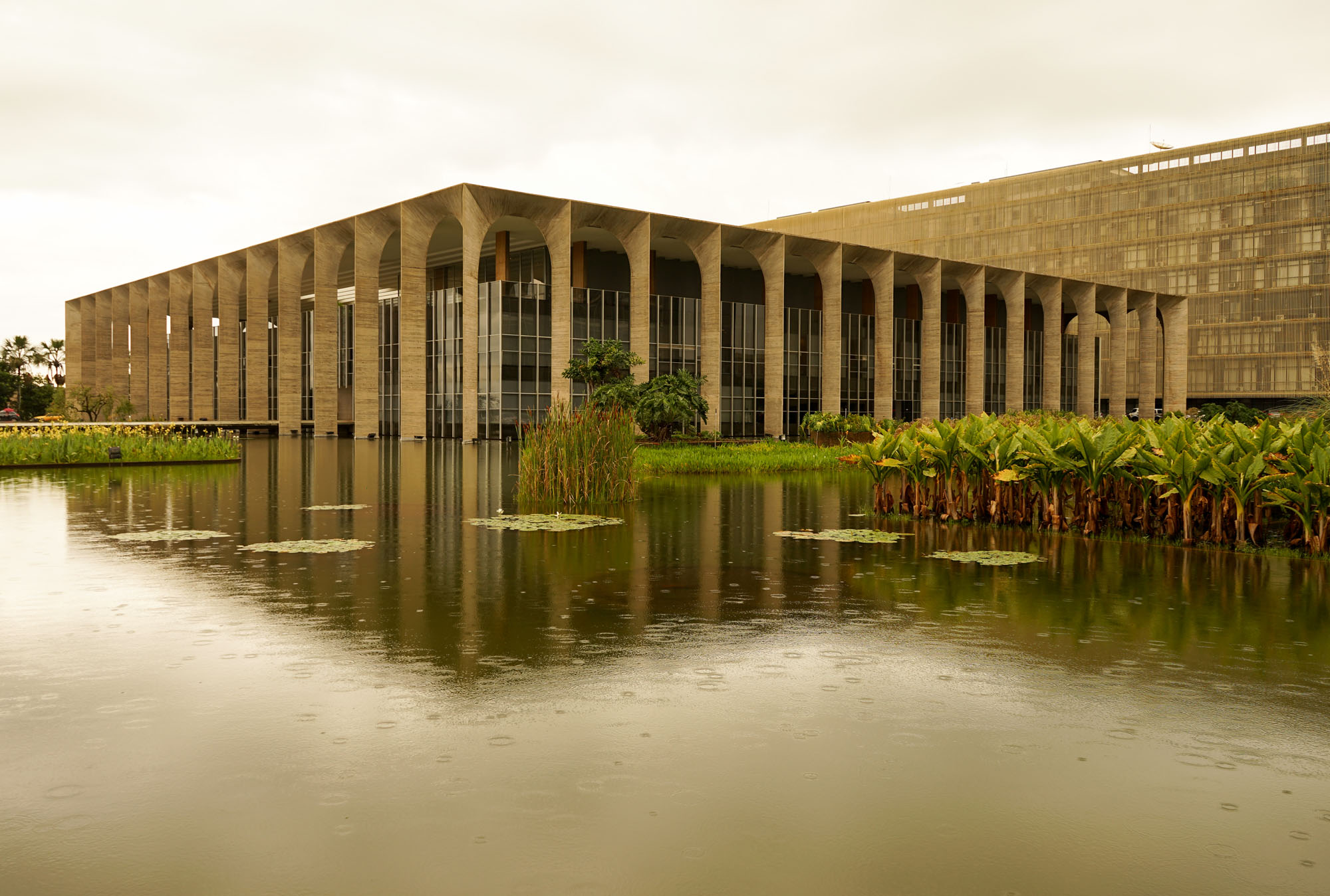 Le palais d’Itamaraty, appelé également le palais des arches abrite le siège du ministère des relations extérieures du Brésil. Sa conception est due à l’architecte Oscar Niemeyer et à l’ingénieur Joaquim Cardoso. Ce palais est entouré d’un plan d’eau, dans lequel se reflète la façade. L’intérieur contient de nombreuses décorations murales d’artistes renommés. Il dispose d’un immense hall de 2800 m2 sans colonnes. L’arrangement paysagiste interieur et extérieur est l’œuvre de Roberto Burle Marx. Au dessus du plan d’eau se trouve une sculpture blanche intitulée "Météore" de Bruno Giorgi.