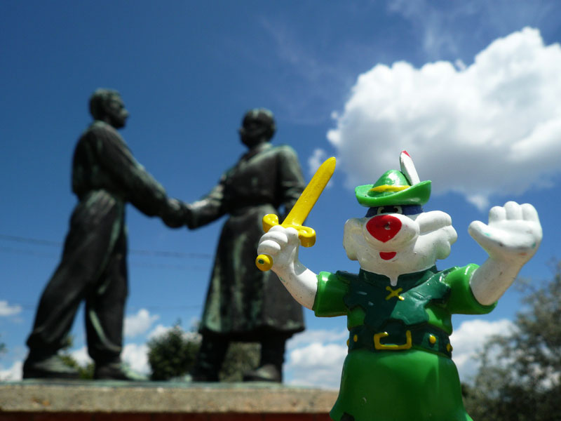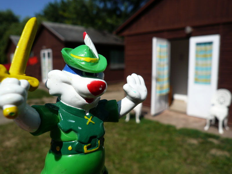 A vrai dire, je ne sais pas s’il s’agit de Petit Jean (le compagnon de Robin des bois). Sous son pied est inscrit "Flunch 1998", il a donc été distribué gratuitement dans un Flunch (chaine de restaurant pas cher), ce qui ne lui interdit pas de prendre des vacances à l’étranger.