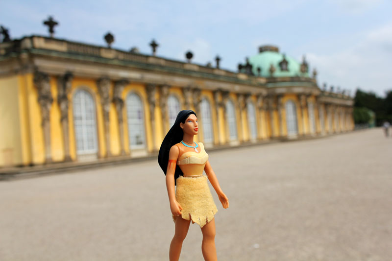 Pocahontas est bien loin de sa tribu Powhatan. Cet été on a pu la voir à Berlin et dans ses environs, la vie de château lui convient parfaitement.