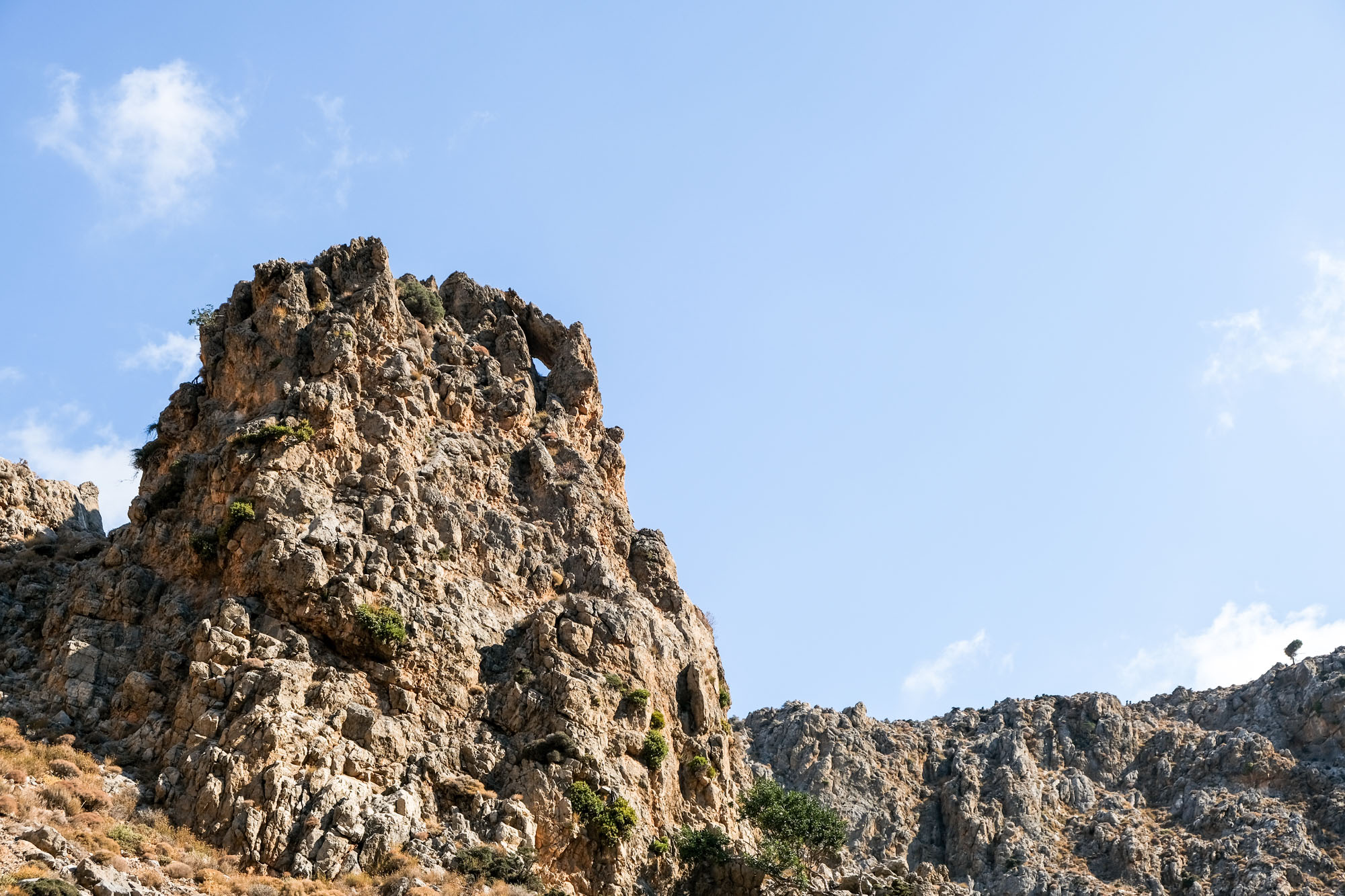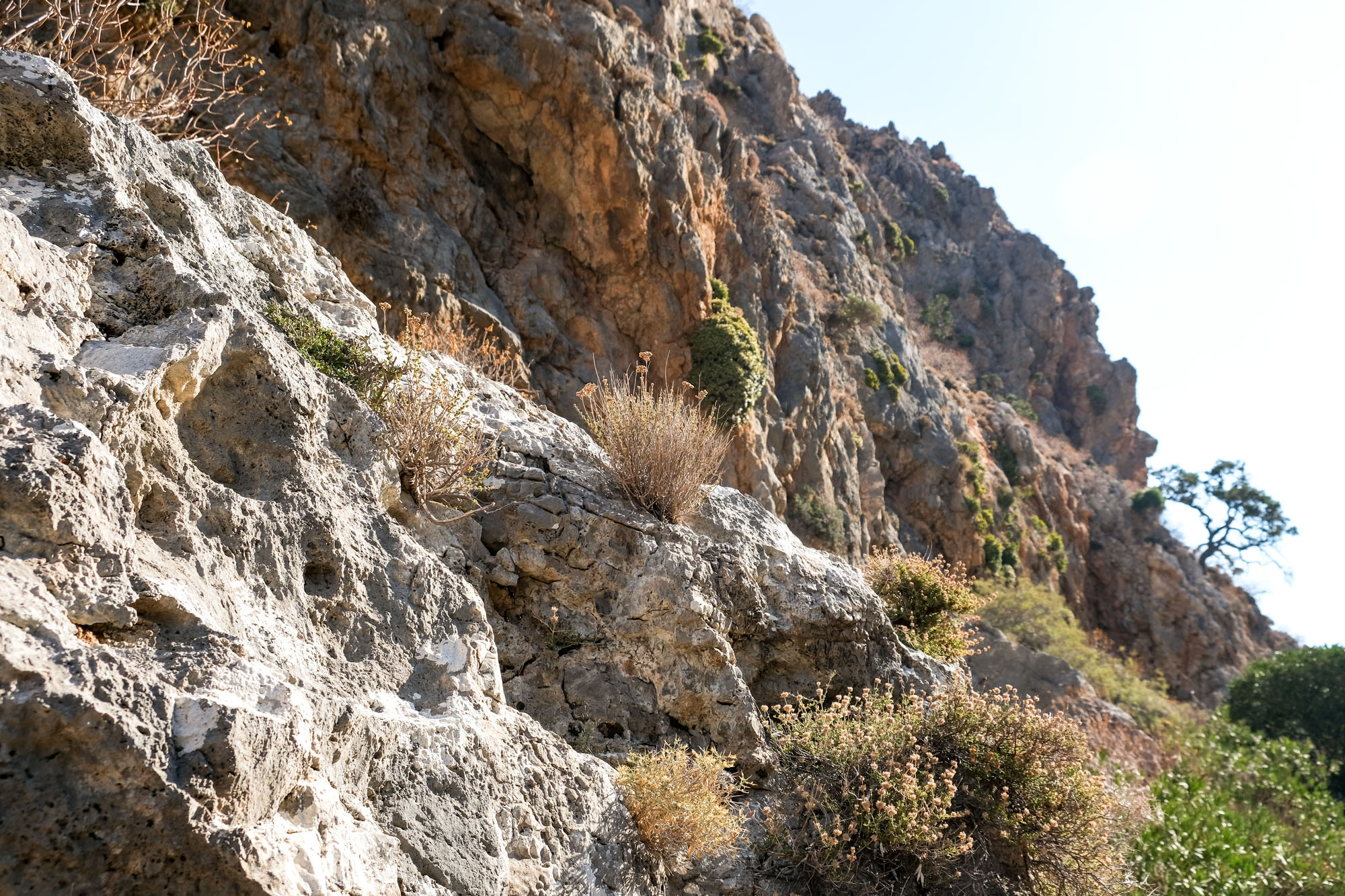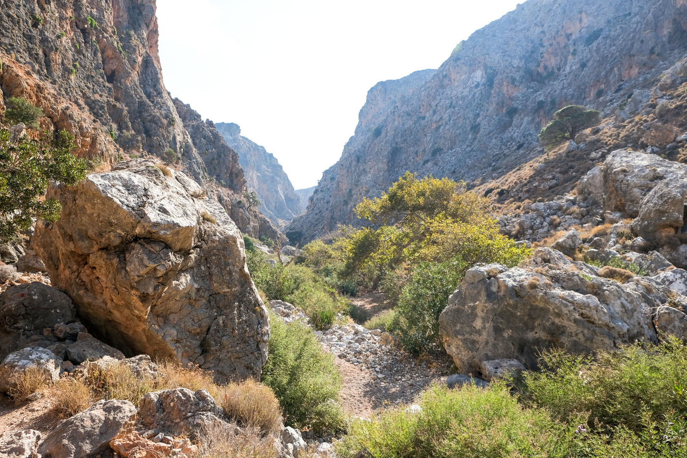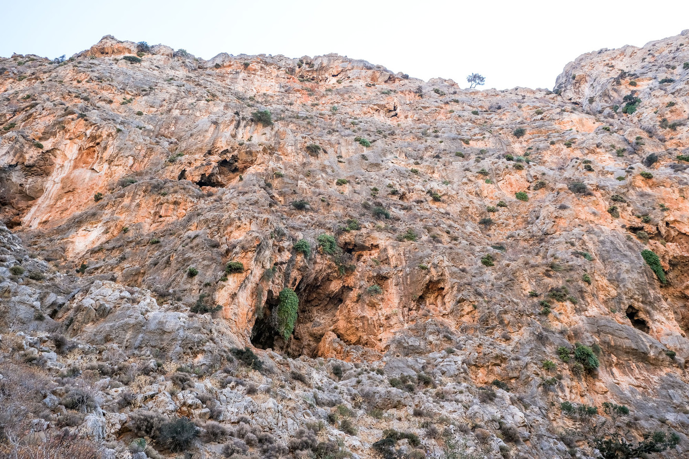 On parle de Gorge des morts et non pas de la Vallée de la mort car le lieu servait de cimetière à la période minoenne. Les morts étaient placés dans des grottes et excavations qui se trouvent sur les parois de la gorge. L’endroit n’a rien. Le sentier serpente au milieu du lit à sec de la rivière, il est très facile à suivre. Le fond de l’oued conserve une certaine humidité, les plantes survivent en toutes saisons.