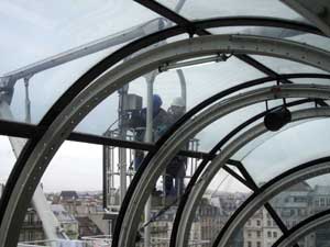 Ce jour là, un jour du mois de novembre 2003 du haut du centre Pompidou, j’ai visité une expo intitulée "M’as-tu vue". Je me suis dirigé vers l’expo Sophie Calle. L’affiche nous la montre sur un fond vert clair. Des hommes nettoyaient les vitres du musée.