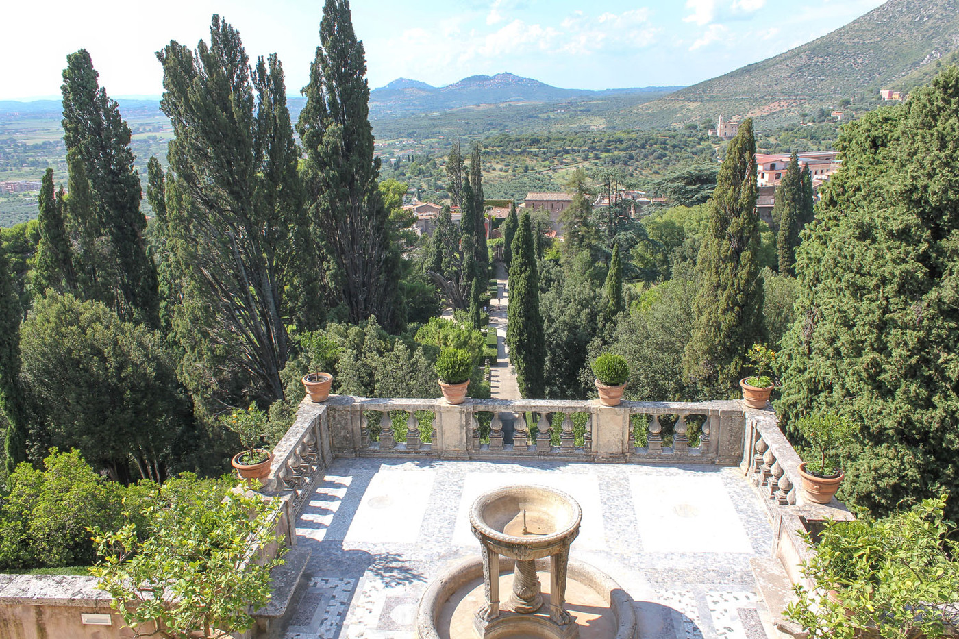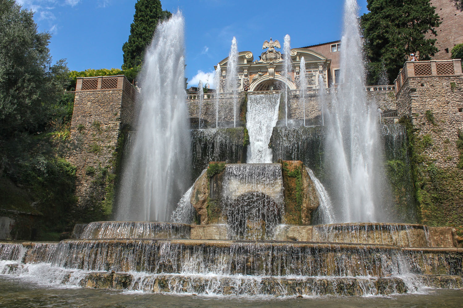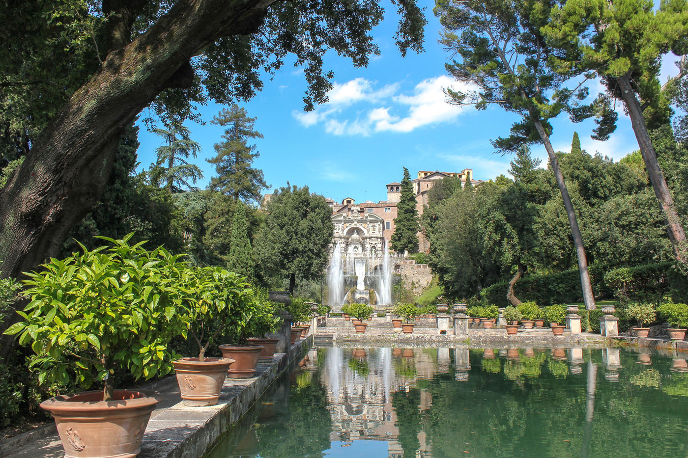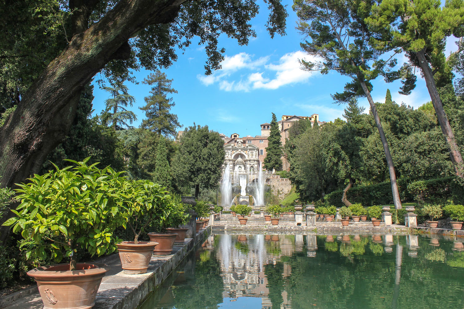 La Villa d’Este, située dans la ville de Tivoli, près de Rome, est un chef-d’œuvre de l’architecture italienne et de l’aménagement de jardins. Par sa conception novatrice et l’ingéniosité des ouvrages architecturaux de son jardin (fontaines, bassins, etc.), c’est un exemple incomparable de jardin italien du XVIe siècle.(Source Wikipedia)