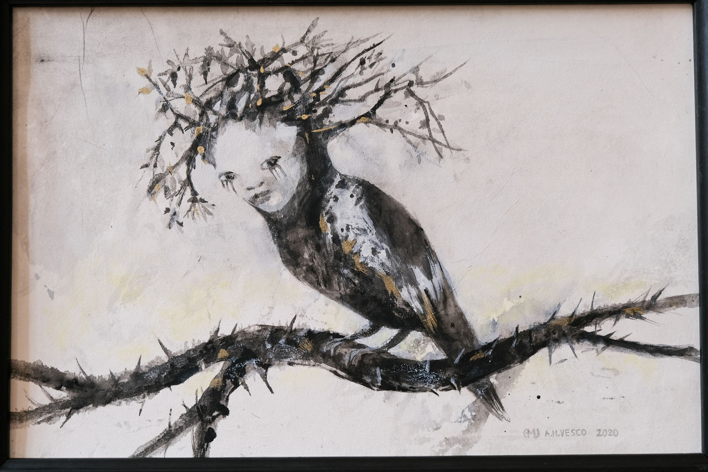 « Échappées Belles » est une invitation au voyage intérieur. Comme le dit Caroline Canault, « Il y a cette idée de traverser, de retourner les choses, de chercher ce qu’il peut y avoir de l’autre côté du miroir ». Dans un naturalisme où la mélancolie côtoie la drôlerie, Anne-Marie Vesco s’applique à peaufiner des talismans.