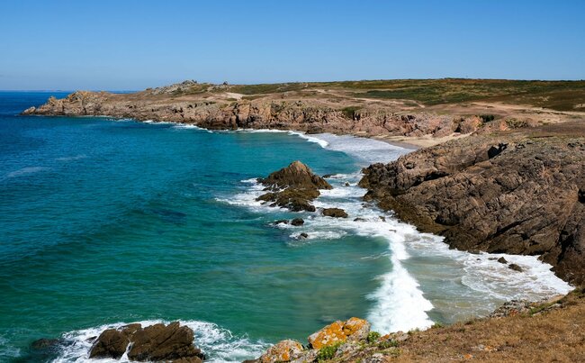Entourée d’une zone de marais aux dunes fragiles, la pointe nargue l’océan de son éperon rocheux. Une villa-château s’y accroche, de granit également. (…)