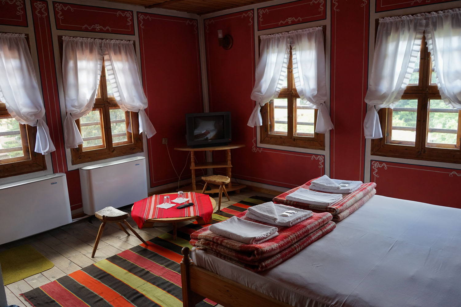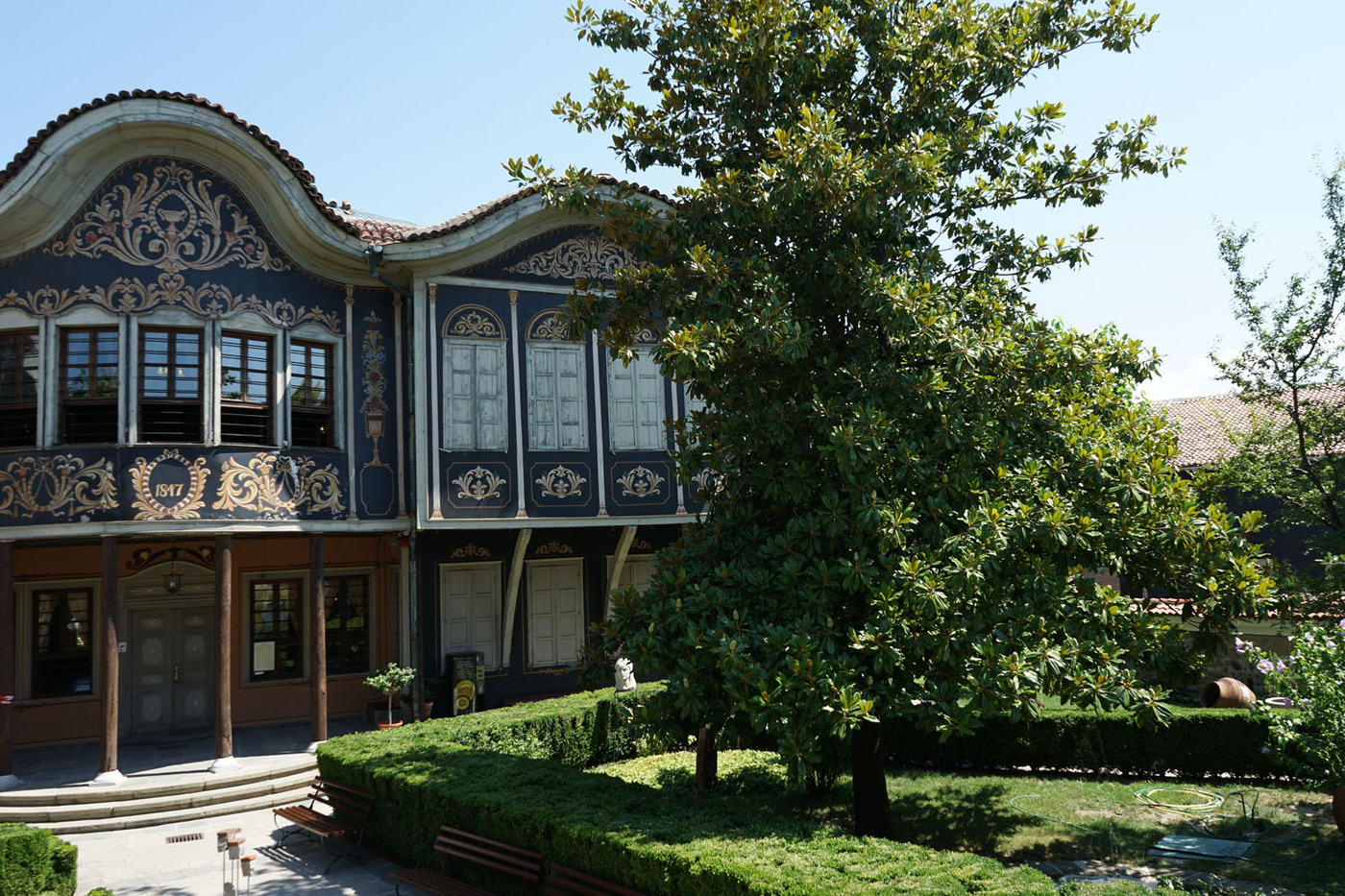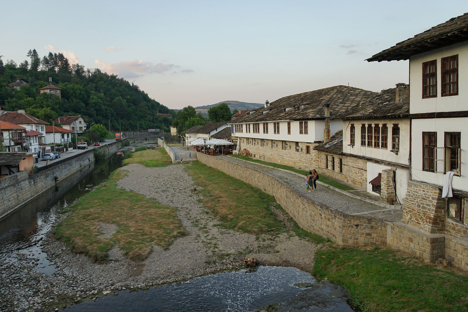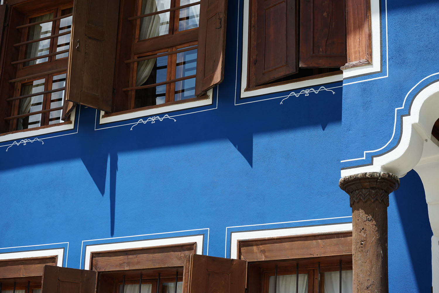 Les villes ont suivi (du moins dans un premier temps !) le même schéma, à ceci près que les demeures sont devenues de plus en plus luxueuses (comme à Plovdiv , Koprivštica ou Trjavna ), se parant de boiseries sculptées, de peintures murales, de plafonds sculptés et d’un mobilier souvent importé d’Europe occidentale.