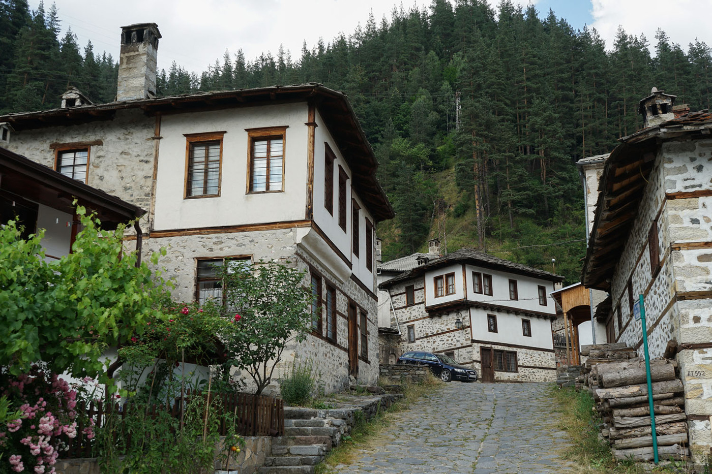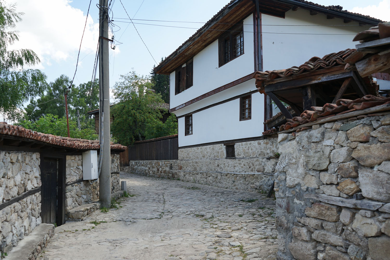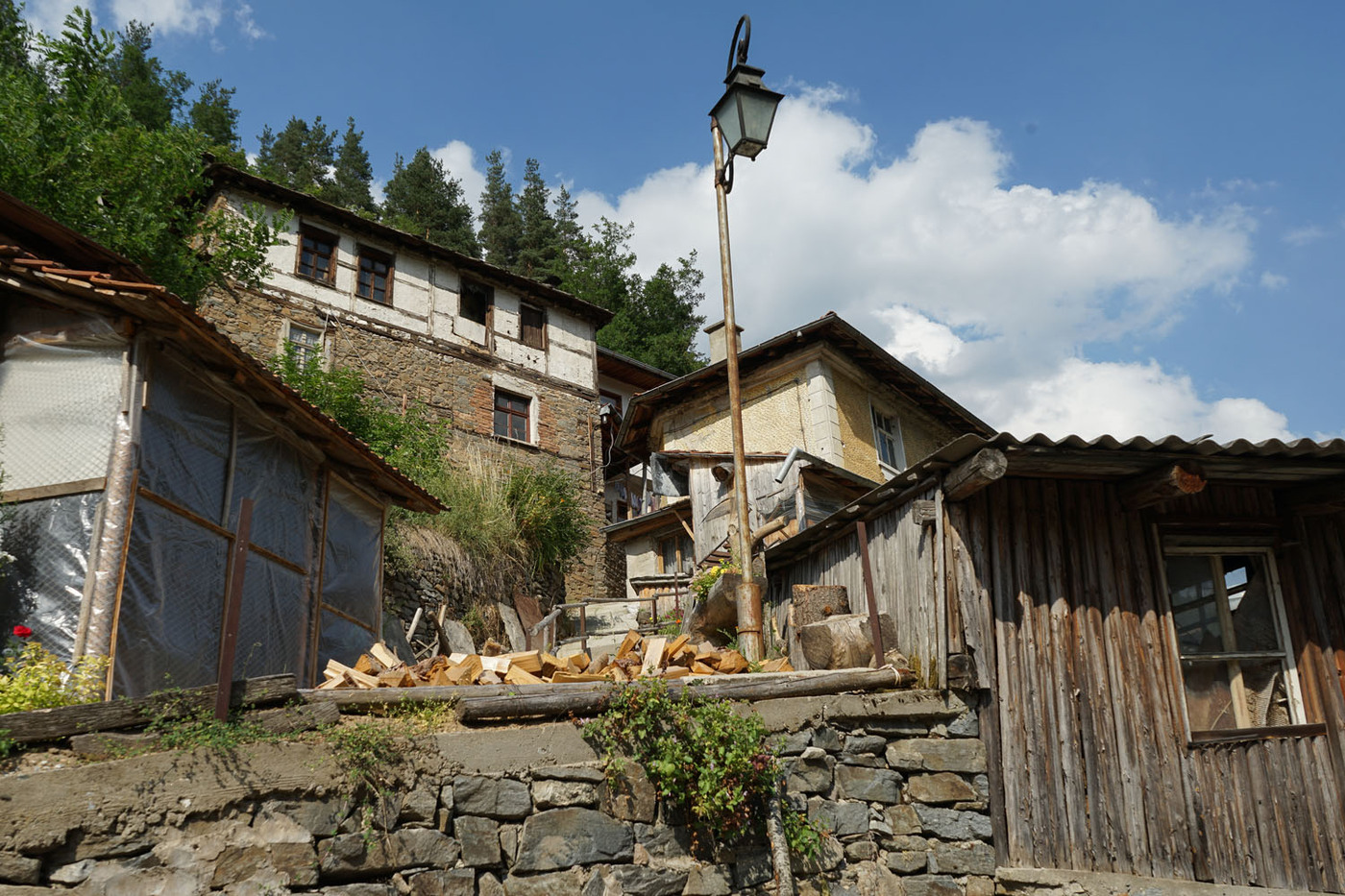 Comme dans toute la région du Balkan, l’habitat traditionnel utilise les matériaux disponibles sur place : pierre et bois, brique ou pisé. Pour des raisons tenant avant tout à l’insécurité des campagnes d’autrefois, les demeures sont souvent enfermées derrière de hauts murs de pierres, étayés par de longues poutres horizontales épousant les irrégularités du terrain. Une porte massive de bois à deux battants ouvre sur un enclos occupé par la maison proprement dite et ses dépendances. La demeure est constituée d’un rez-de-chaussée, si possible de pierre (suivant la profession du maître des lieux, il s’agira d’une remise, d’ateliers voire d’écuries), et d’un ou plusieurs étages réservés à l’habitat : construits dans des matériaux plus légers (une coque de bois avec remplissage de briques ou de torchis), ceux-ci sont souvent disposés en encorbellement, sur des contreforts de bois parfois ouvragés et recourbés. Les toitures sont en tuiles ou en grosses plaques de lauzes.