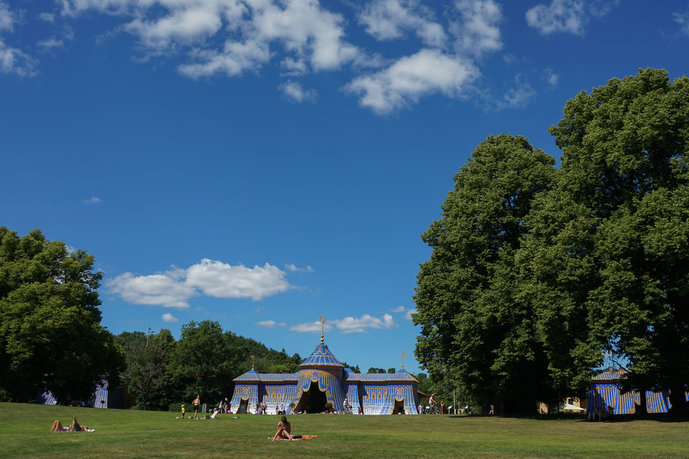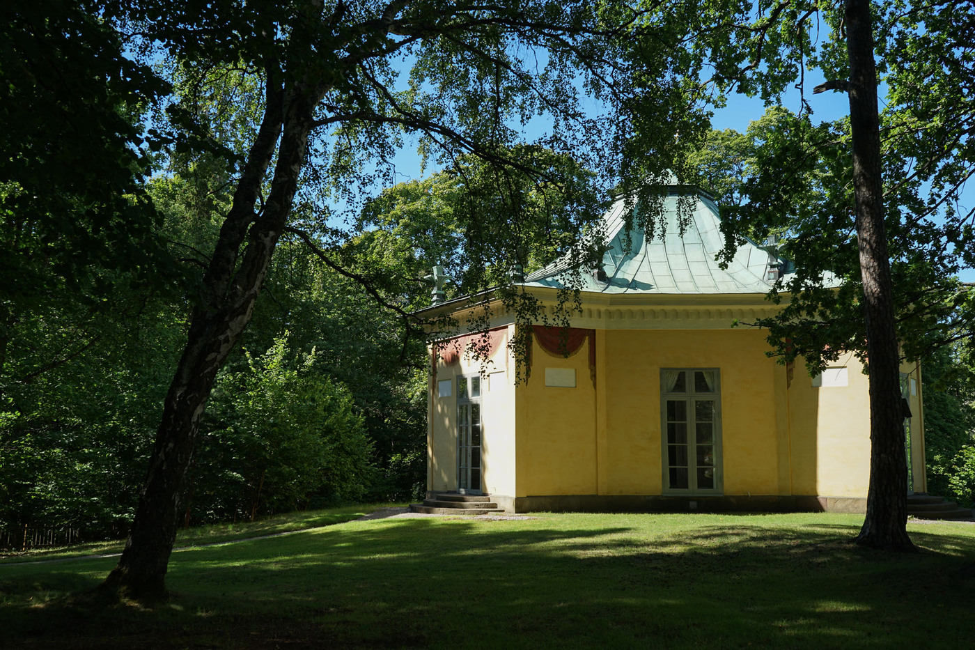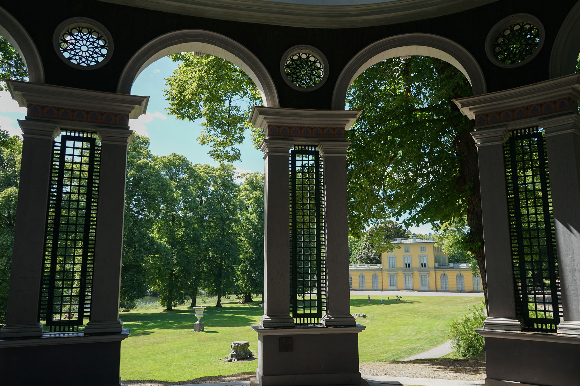 Le parc comprend un certain nombre de bâtiments historiques : châteaux, pavillons et temples, dont deux des résidences officielles de la famille royale de Suède : le château de Haga et le pavillon de Gustave III. On y trouve aussi les ruines d’un palais dont la construction a été abandonnée en 1792. Source Wikipédia