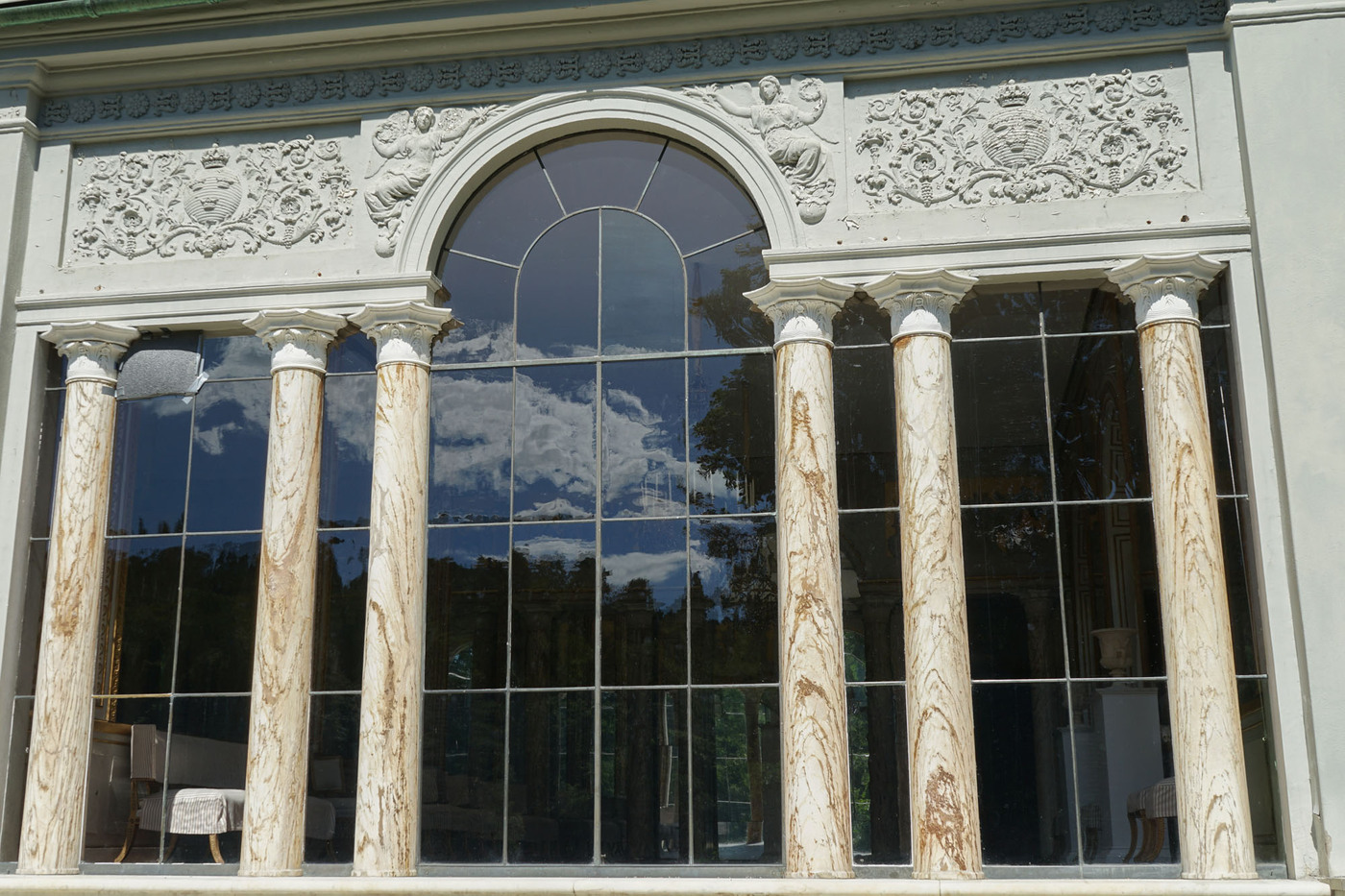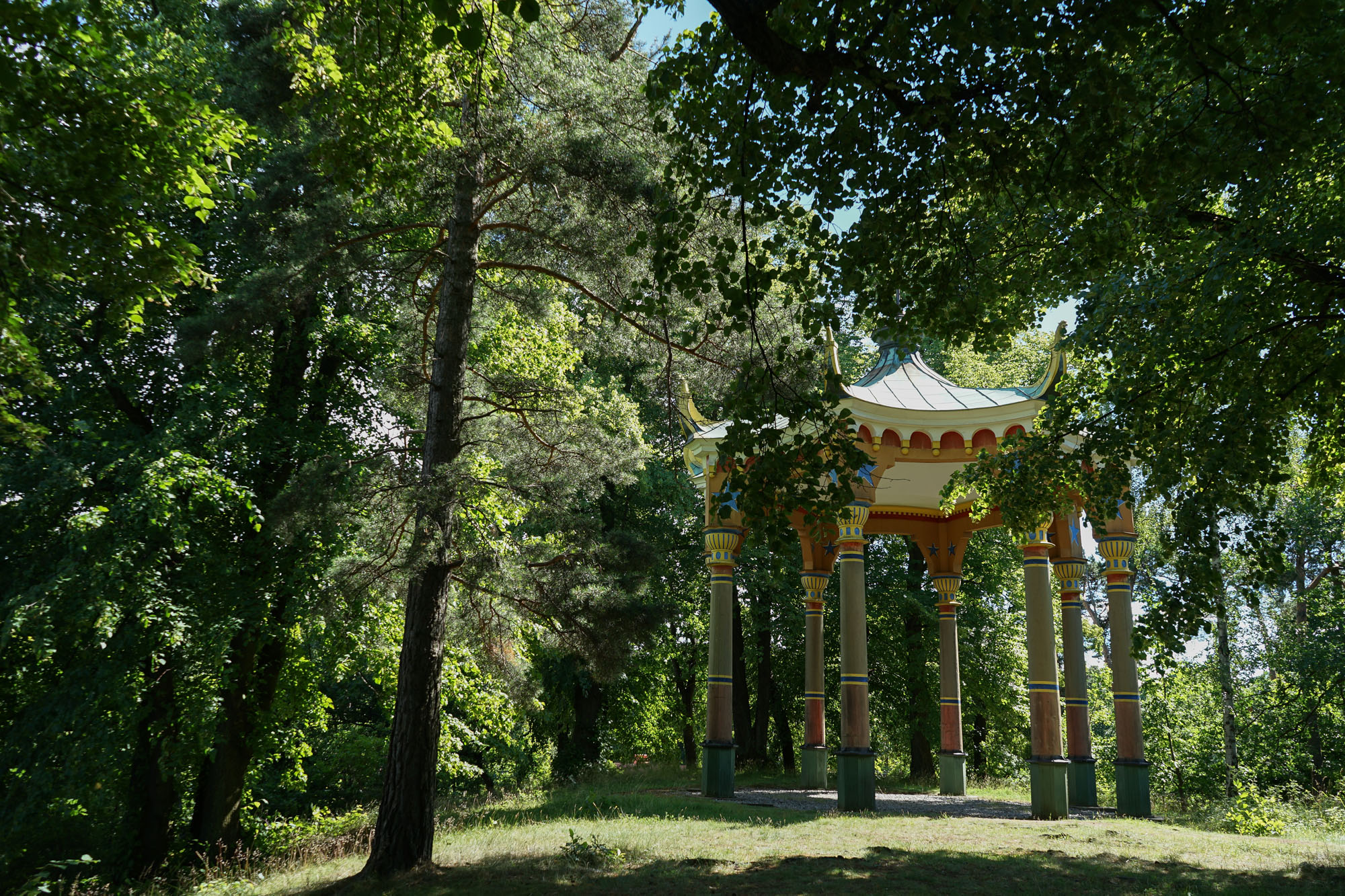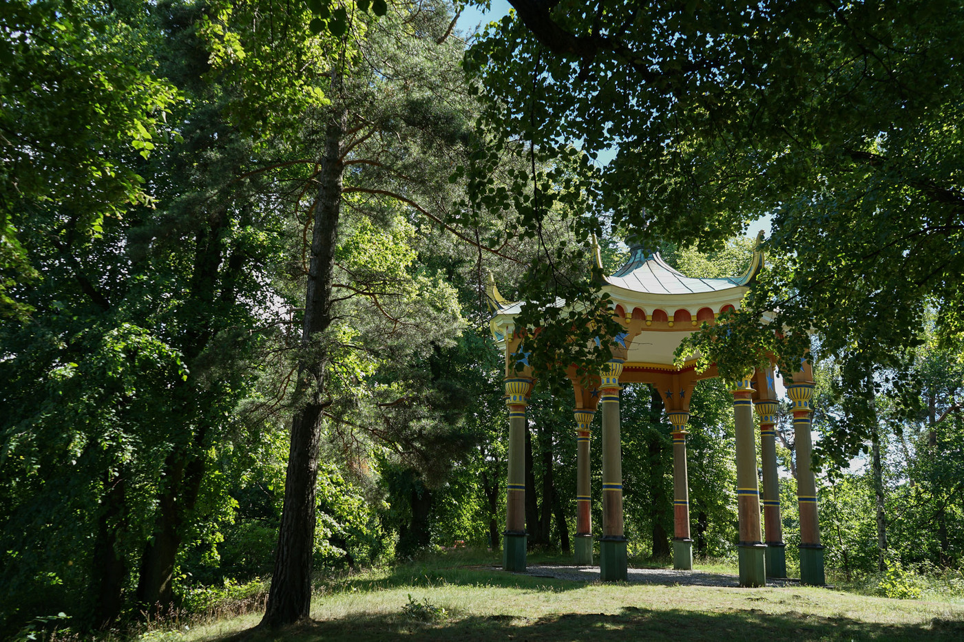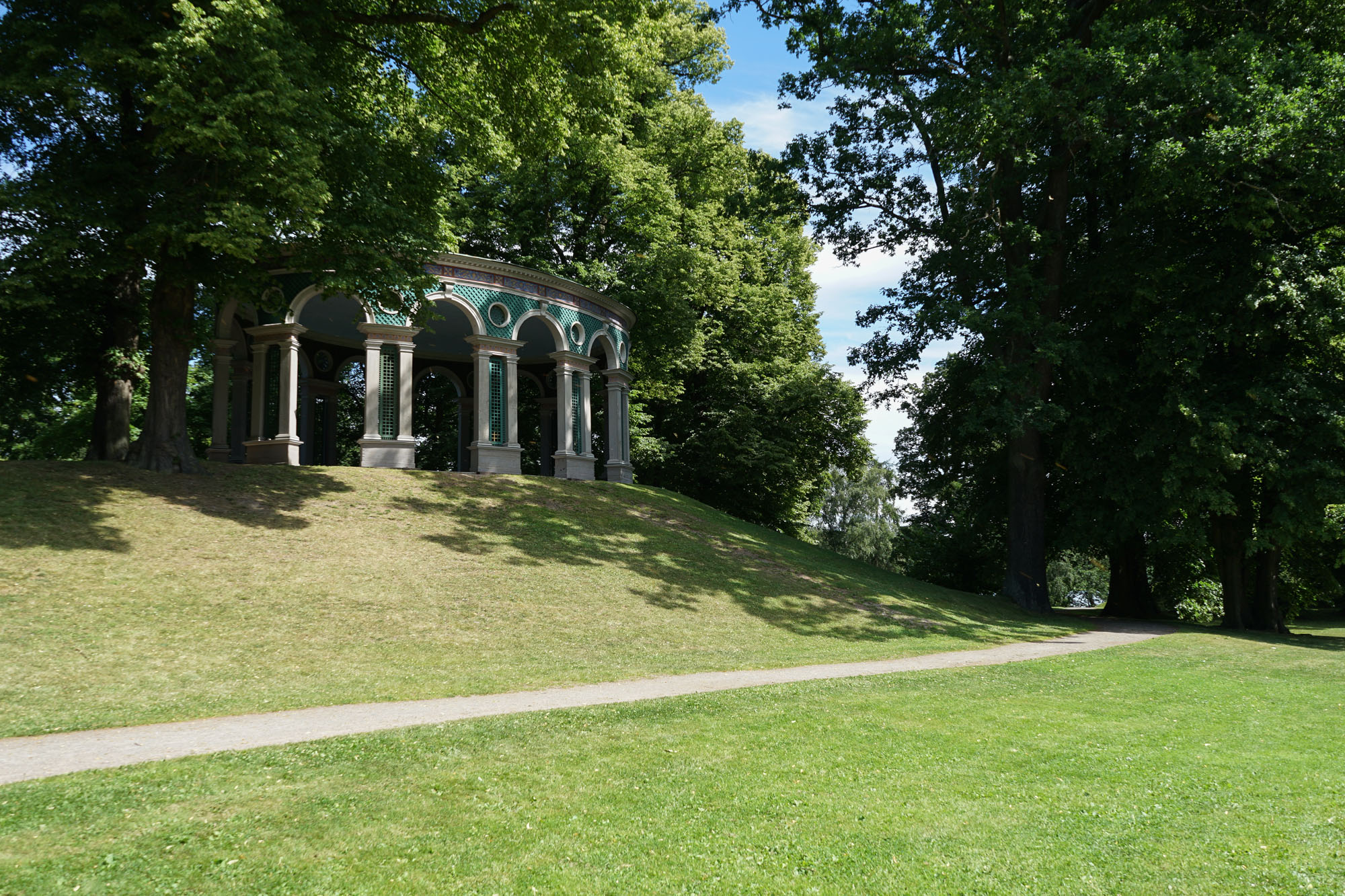 Le parc comprend un certain nombre de bâtiments historiques : châteaux, pavillons et temples, dont deux des résidences officielles de la famille royale de Suède : le château de Haga et le pavillon de Gustave III. On y trouve aussi les ruines d’un palais dont la construction a été abandonnée en 1792. Source Wikipédia