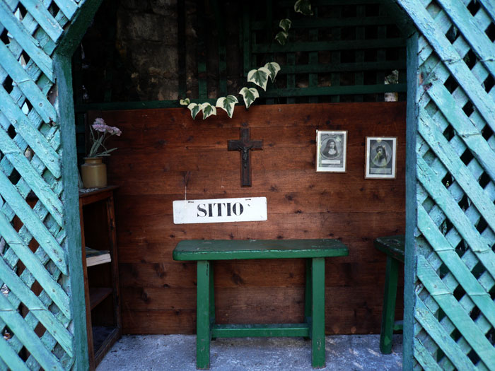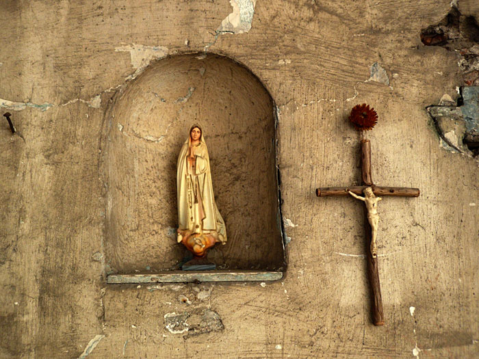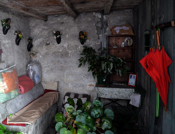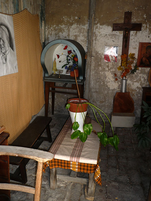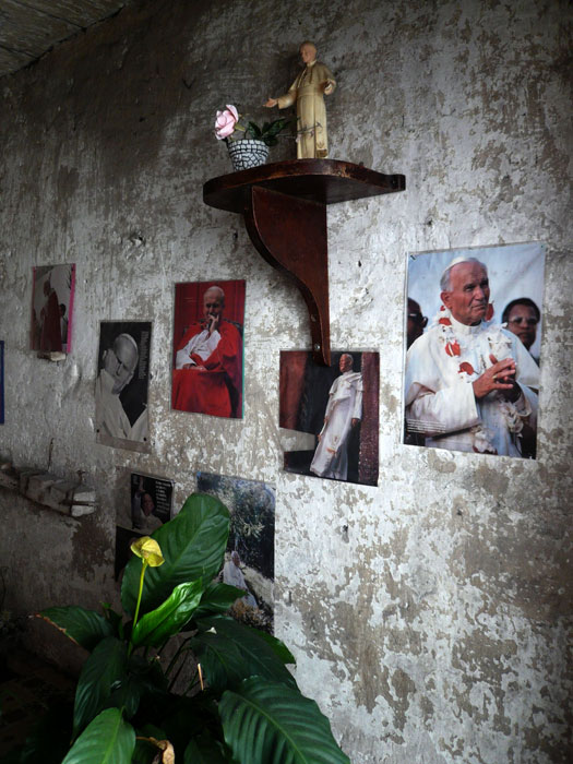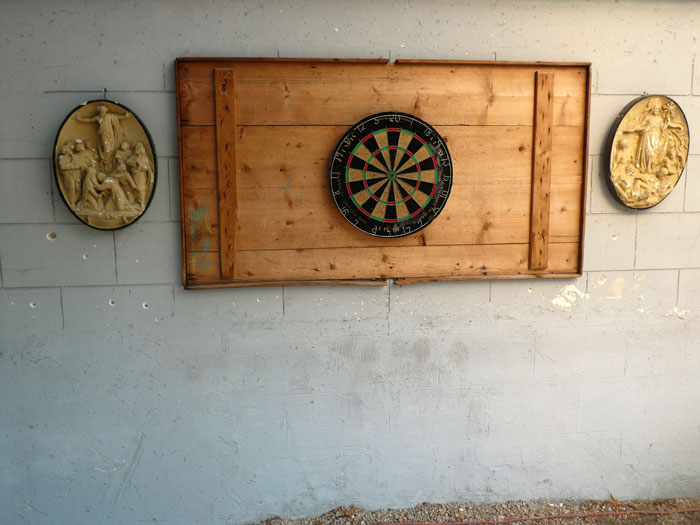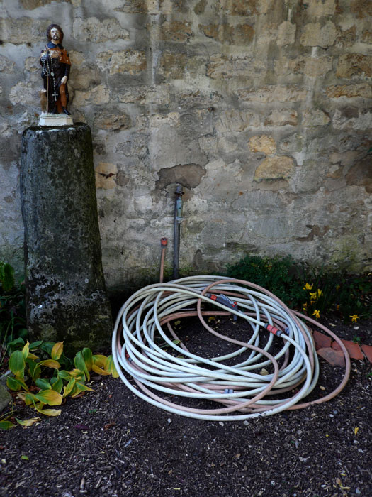 J’ai découvert ce jardin à l’occasion de la Fête des jardins au 39 rue Gay-Lussac. Il y règne une ambiance étrange avec un jeu de fléchettes au milieu du chemin de croix, un jésus au bras cassé, une marie qui s’abrite dan une très vieille cabine téléphonique, un coin du Pape, un jardin d’hiver ....