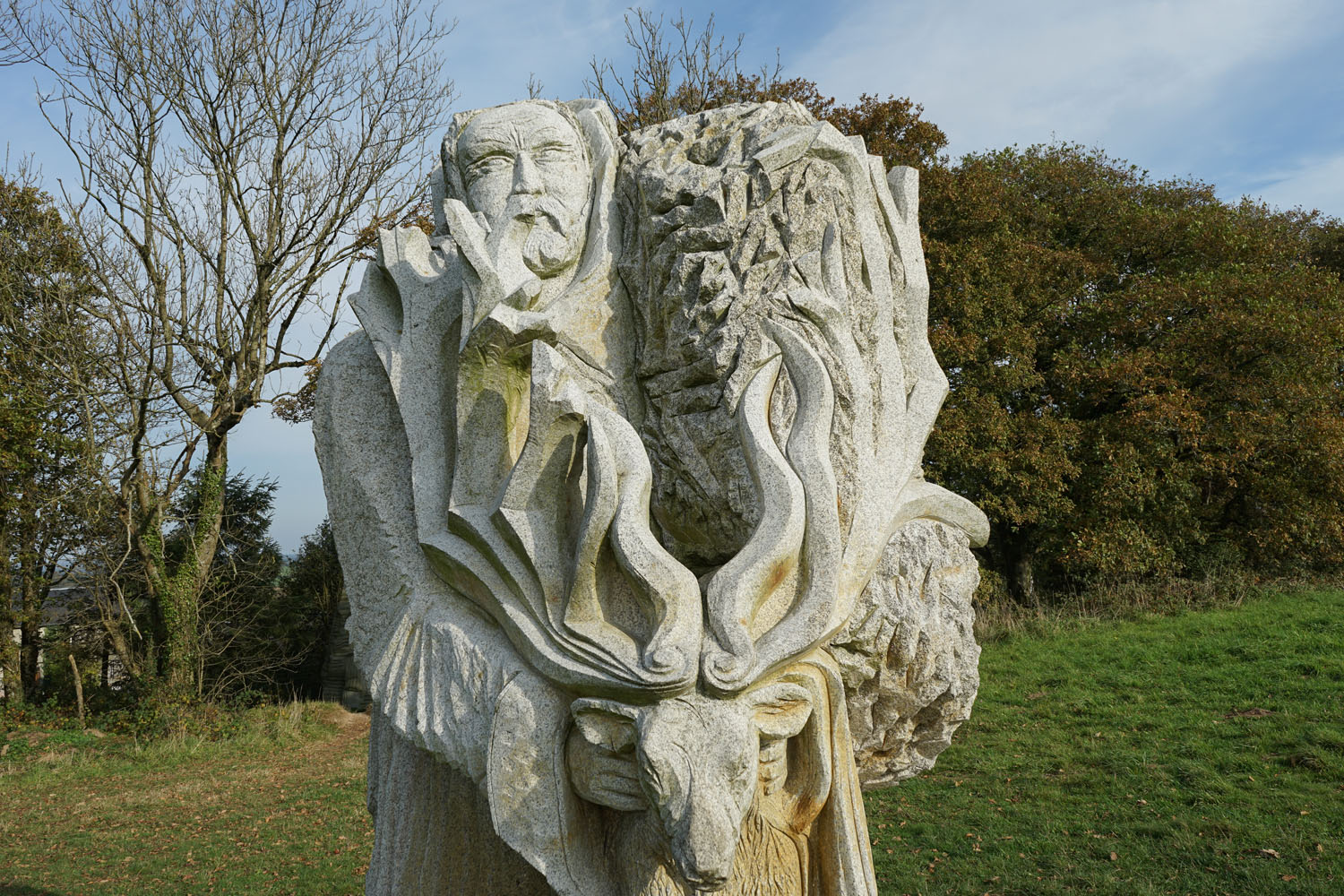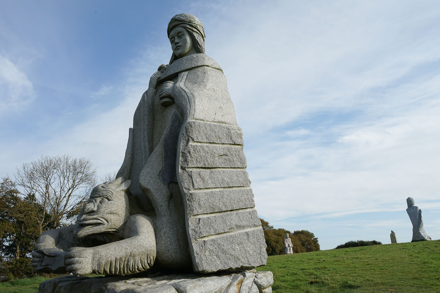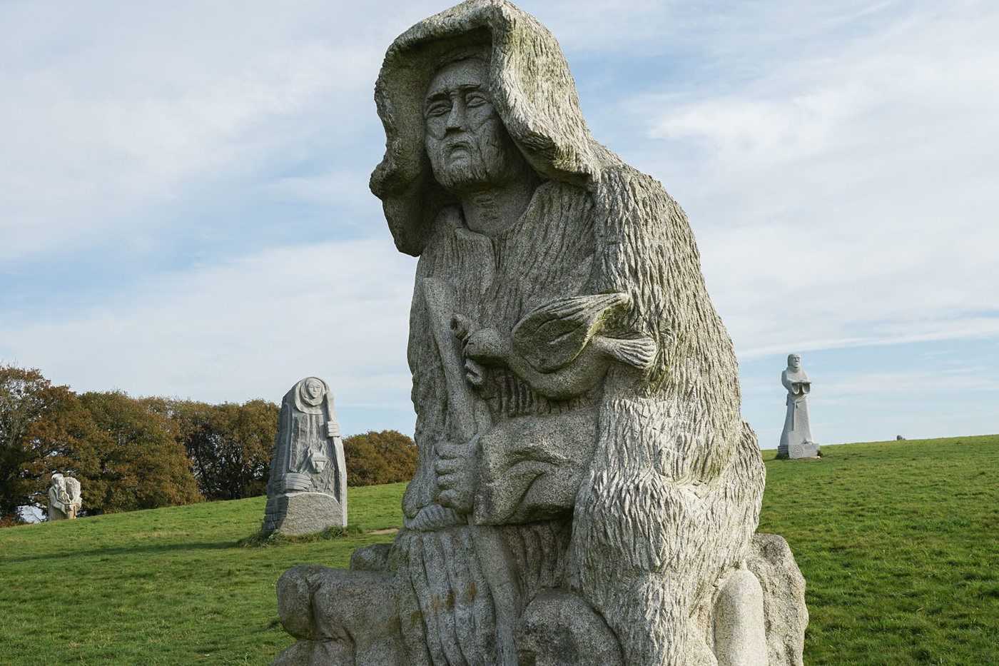 La Vallée des Saints (Traonienn ar Sent en breton) est une association portant un projet de statuaire monumentale établi en Bretagne. L’idée qui préside à ce projet est de réaliser une « Île de Pâques bretonne du troisième millénaire », un lieu de spiritualité honorant la mémoire collective bretonne, qui a vocation à accueillir d’importantes statues en granit (d’environ trois mètres de hauteur) à l’effigie de 1 000 saints bretons (qui sont représentés avec un visage et leurs attributs)2. Il repose sur le mécénat, chaque statue voyant son financement assuré par une entreprise ou des particuliers. Source Wikipedia
