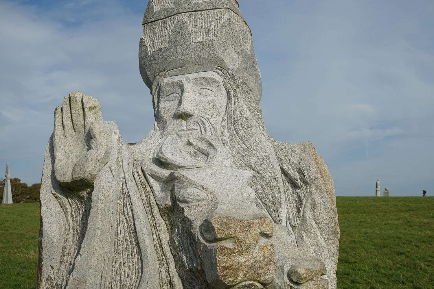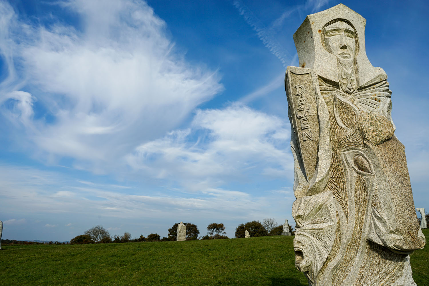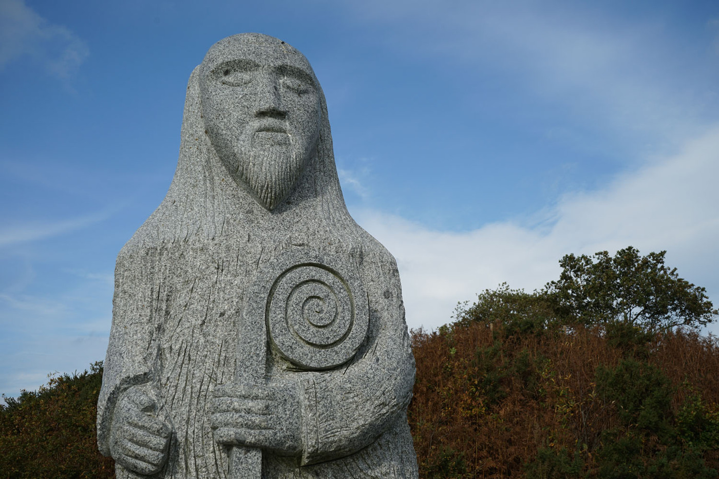 La Vallée des Saints (Traonienn ar Sent en breton) est une association portant un projet de statuaire monumentale établi en Bretagne. L’idée qui préside à ce projet est de réaliser une « Île de Pâques bretonne du troisième millénaire », un lieu de spiritualité honorant la mémoire collective bretonne, qui a vocation à accueillir d’importantes statues en granit (d’environ trois mètres de hauteur) à l’effigie de 1 000 saints bretons (qui sont représentés avec un visage et leurs attributs)2. Il repose sur le mécénat, chaque statue voyant son financement assuré par une entreprise ou des particuliers. Source Wikipedia