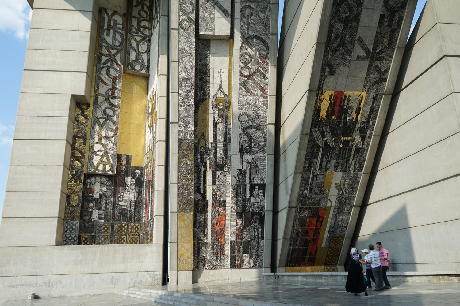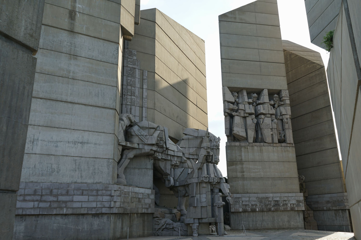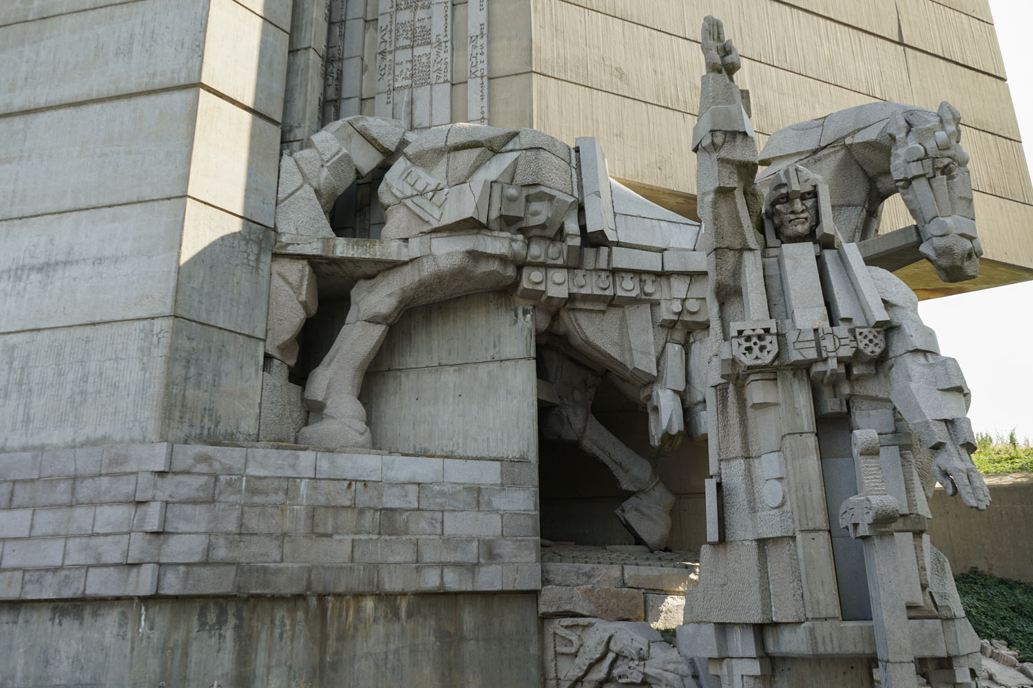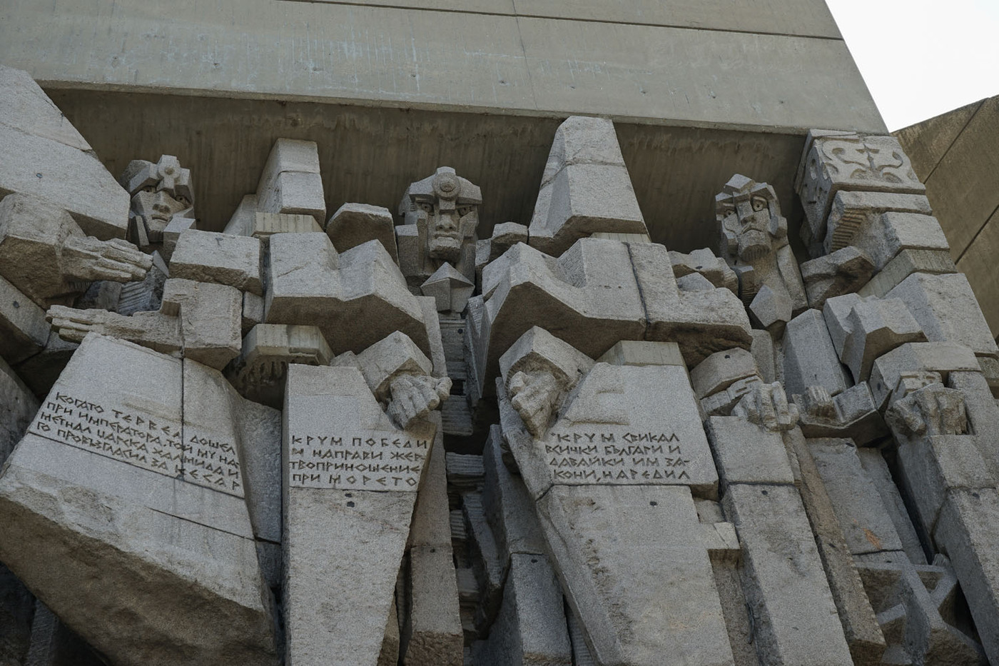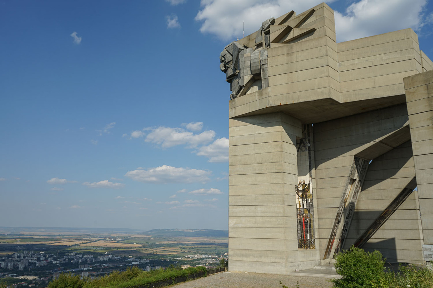 Le Monument des 1300 ans de la Bulgarie (également connu sous le nom de Monument des Fondateurs de l’État Bulgare) est un monument commémoratif anniversaire qui se situe sur un plateau rocheux surplombant la ville de Shoumen. Il est généralement considéré comme étant le seul monument au monde à dépeindre l’histoire de tout un pays, de sa création à l’époque moderne. Il fut construit en 1981 pour commémorer le 1300e anniversaire du Premier Empire bulgare. Conçu dans le style cubique par les sculpteurs bulgares Krum Damyanov et Ivan Slavov, le monument est construit en béton. On peut y accèder depuis Shoumen par un escalier processionnel (en béton lui aussi). Il se trouve à une hauteur de 450 m au-dessus du niveau de la mer et peut être vu jusqu’à 30 km. (Source Wikipedia)