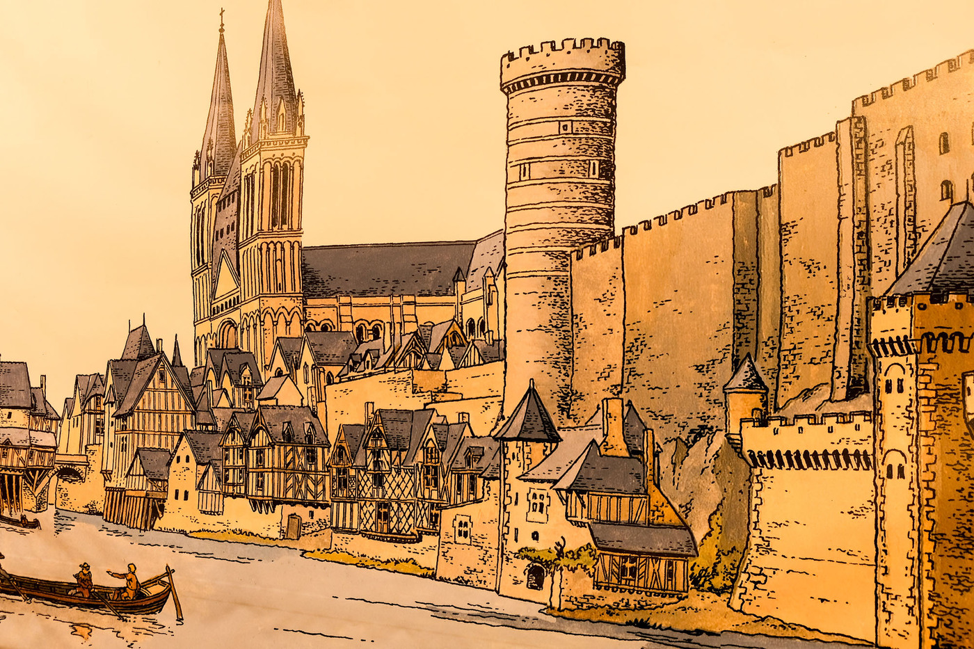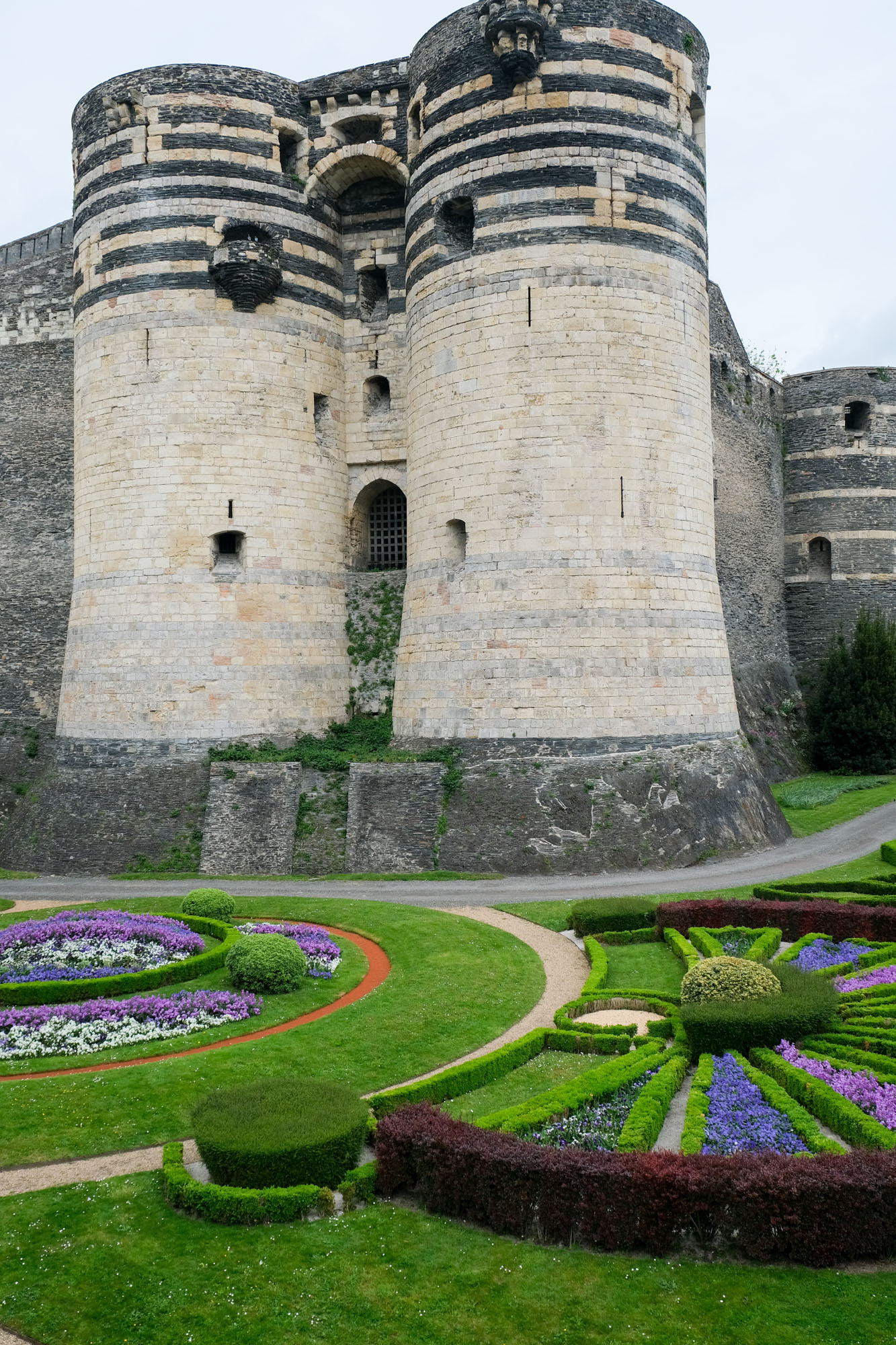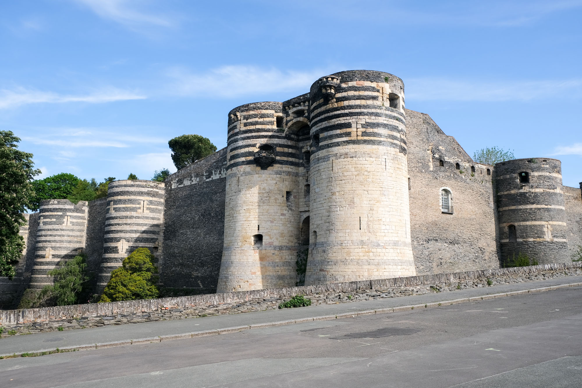 Le château d’Angers, aussi appelé château des ducs d’Anjou, est situé dans le département de Maine-et-Loire. Le site est occupé dès l’antiquité du fait de sa position défensive stratégique. Par la suite, les comtes d’Anjou y installent leurs demeures, jusqu’à la fin de l’empire Plantagenêt qui voit le royaume de France conquérir le comté d’Anjou. Louis IX fait construire le château actuel au XIIIe siècle tandis que les ducs d’Anjou le transforment en résidence seigneuriale au XVe siècle. Yolande d’Aragon y donne naissance à René d’Anjou. Au XVIe siècle, à la suite des troubles des guerres de Religion, Henri III ordonne la destruction du château, mais seule la partie supérieure des tours est détruite. Il est par la suite transformé en prison, puis en garnison et dépôt de munition pendant la Seconde Guerre mondiale. Depuis 1954, il héberge la tenture de l’Apocalypse et est un des sites touristiques les plus visités de Maine-et-Loire. Son ouverture au tourisme est gérée par le Centre des monuments nationaux. Source : Wikipédia