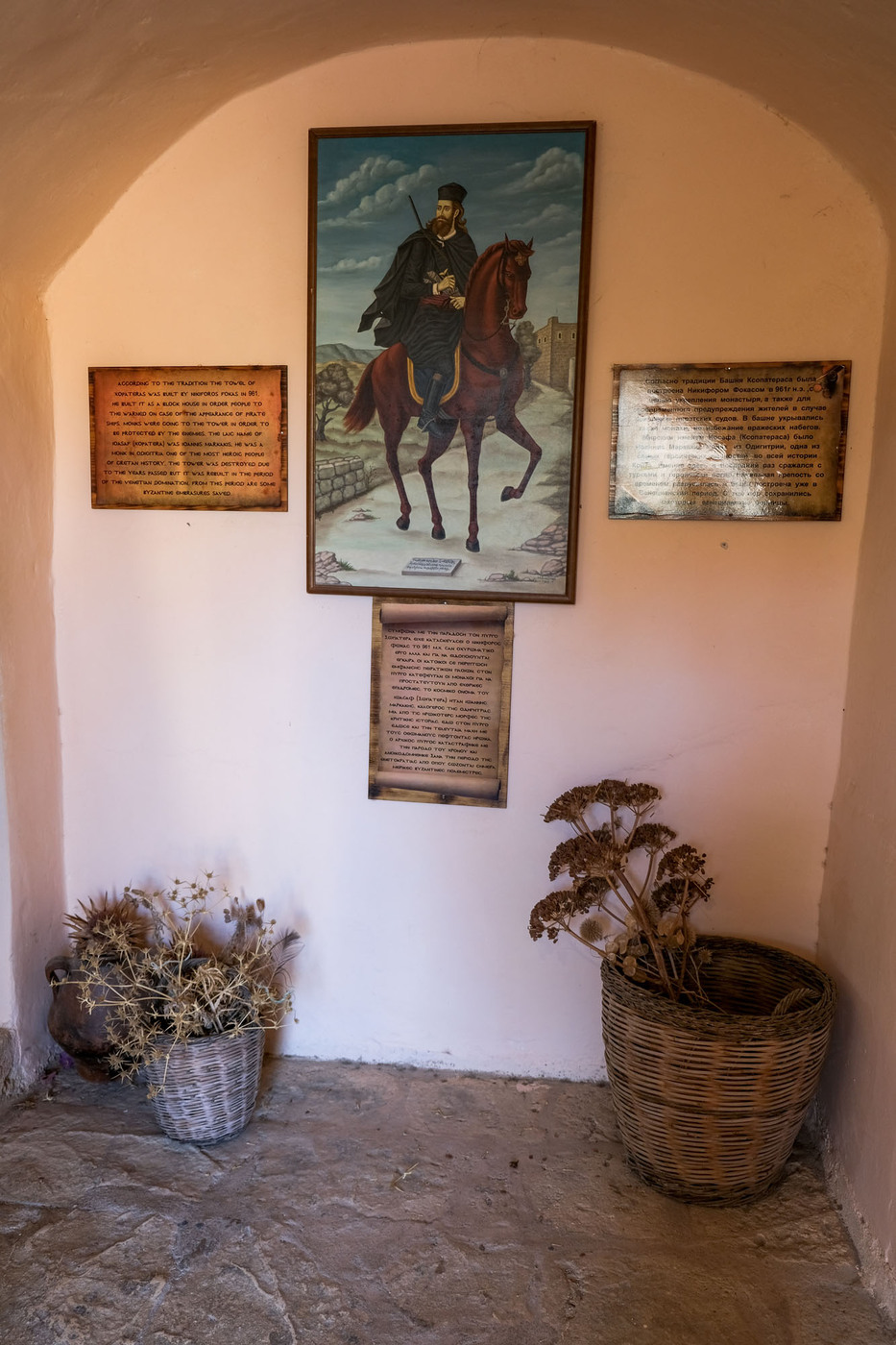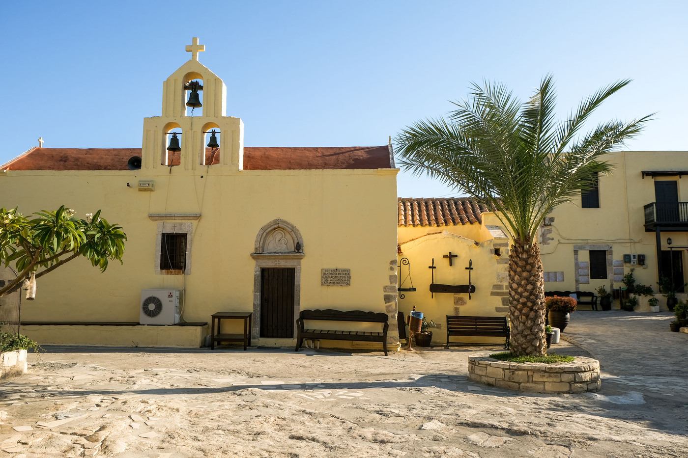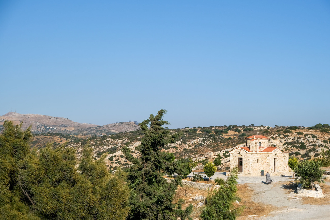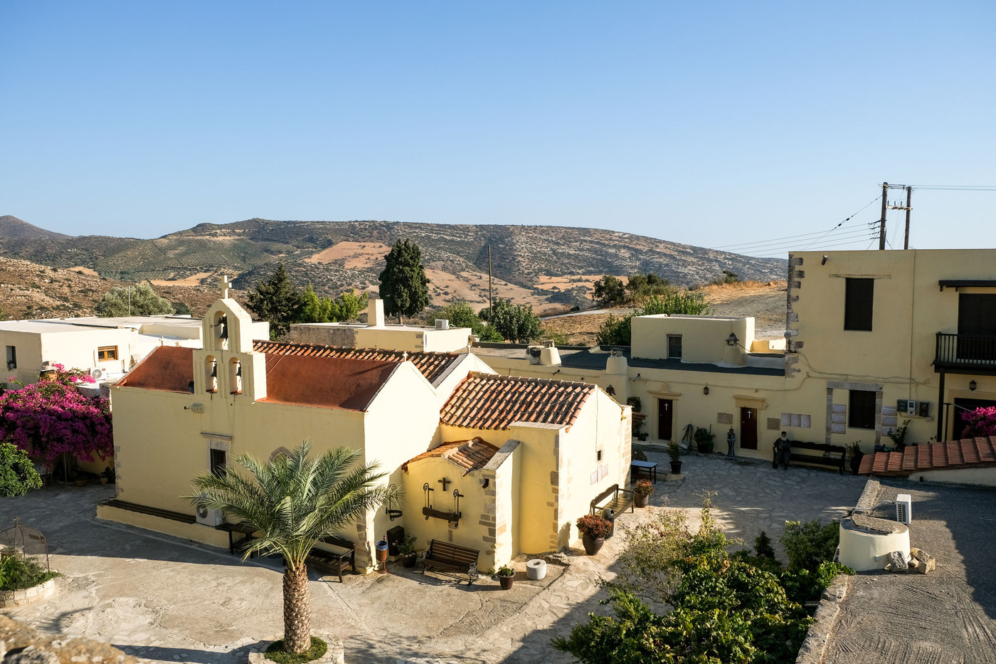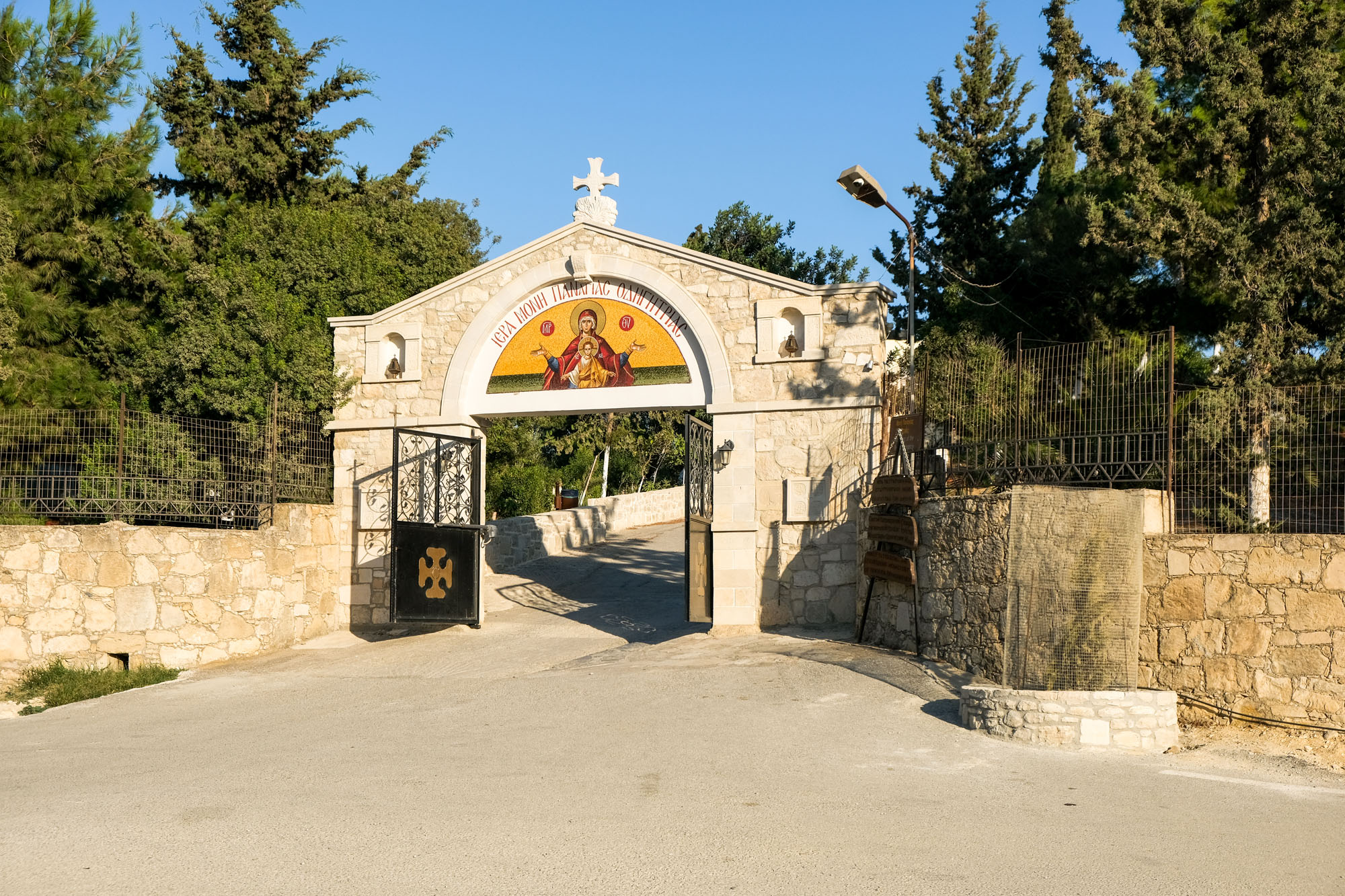 Le monastère d’Hodigitria (la Vierge qui montre la Voie) est un des monastères les plus anciens et les plus importants de Crète dont l’histoire est étroitement liée à celle des petits monastères et des retraites de la région d’Asterousia. Il est de type "forteresse", avec une grande tour fortifiée située dans l’enceinte pour assurer la protection des moines contre les pirates qui venaient de la mer du sud. Cette tour, selon la tradition, fut initialement fondée par Nicéphore Phocas, en 961 de notre ère. Toutefois, la tour que nous apercevons date d’une époque ultérieure, construite sur le site de la première, à l’ère de l’occupation vénitienne. Source : orthodoxcrete.com