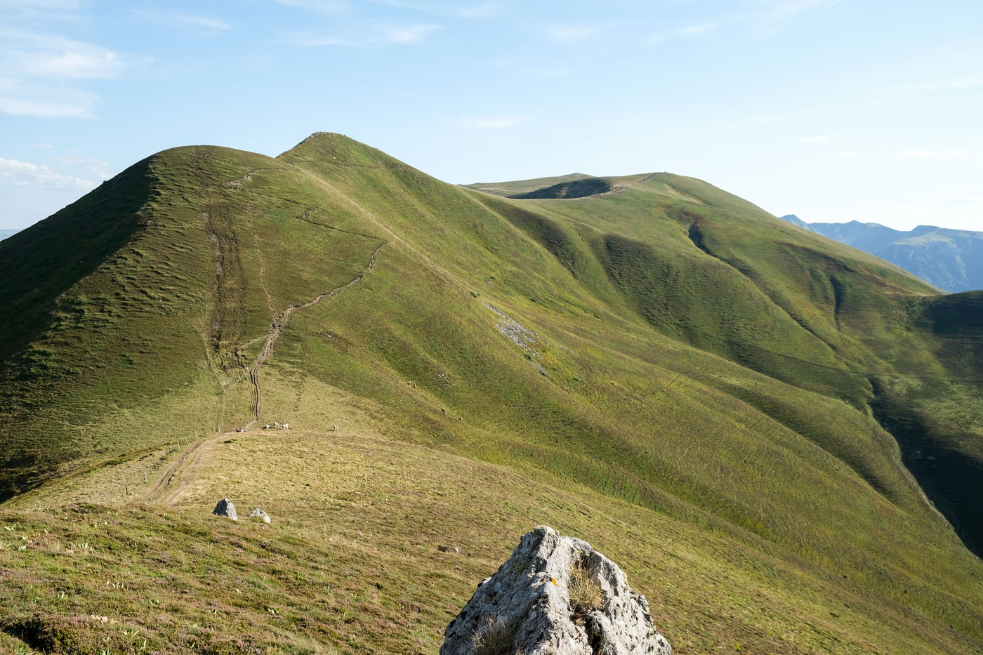 Depuis le col de la croix Morand, célébré par le chanteur auvergnat Jean Louis Murat, cette courte balade permet de gravir le puy de la Tache (1629 m) par un sentier tracé en lacets dans la prairie, afin de rendre l’ascension plus aisée. Le sommet offre un panorama étendu de 360°.