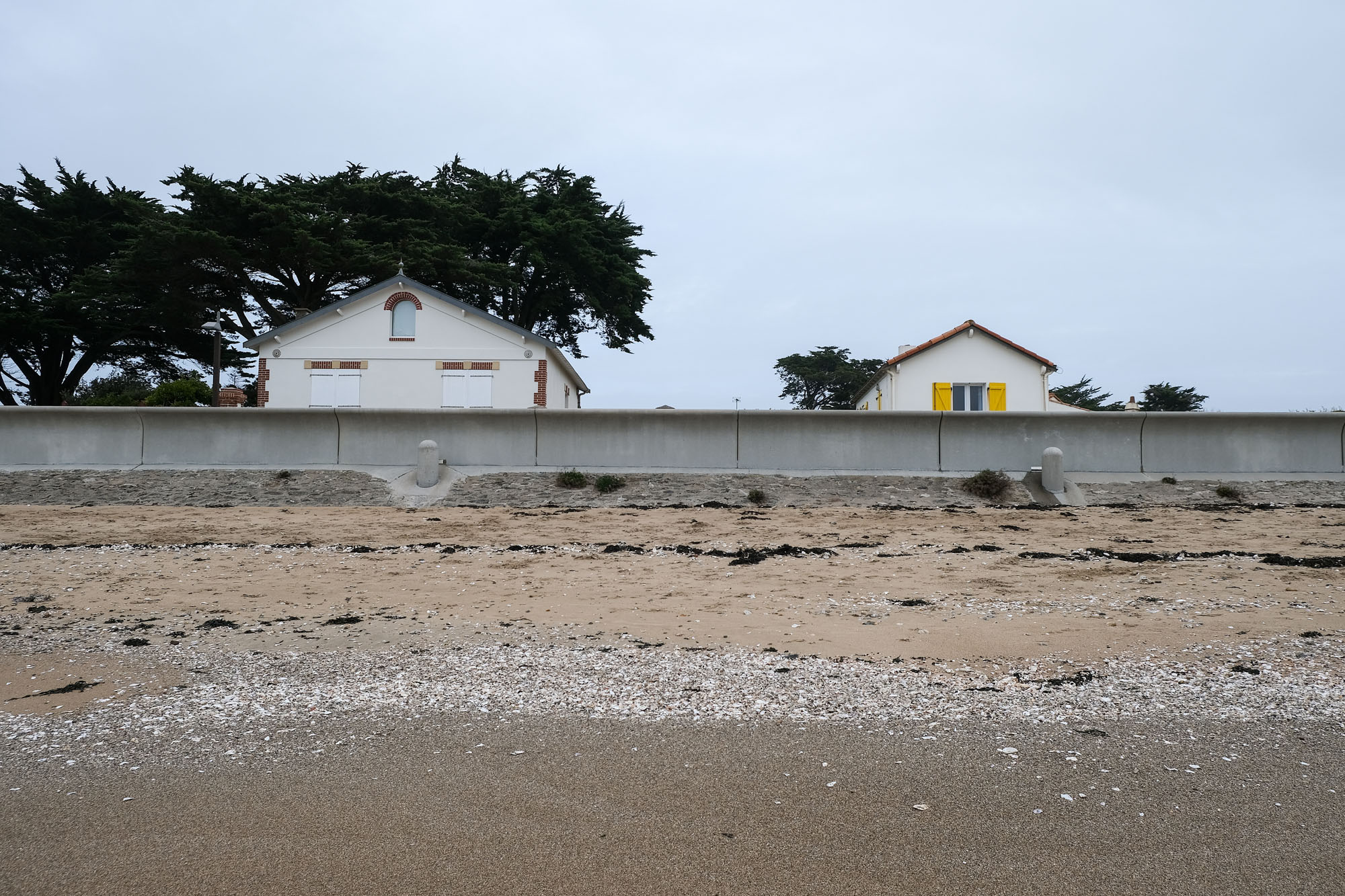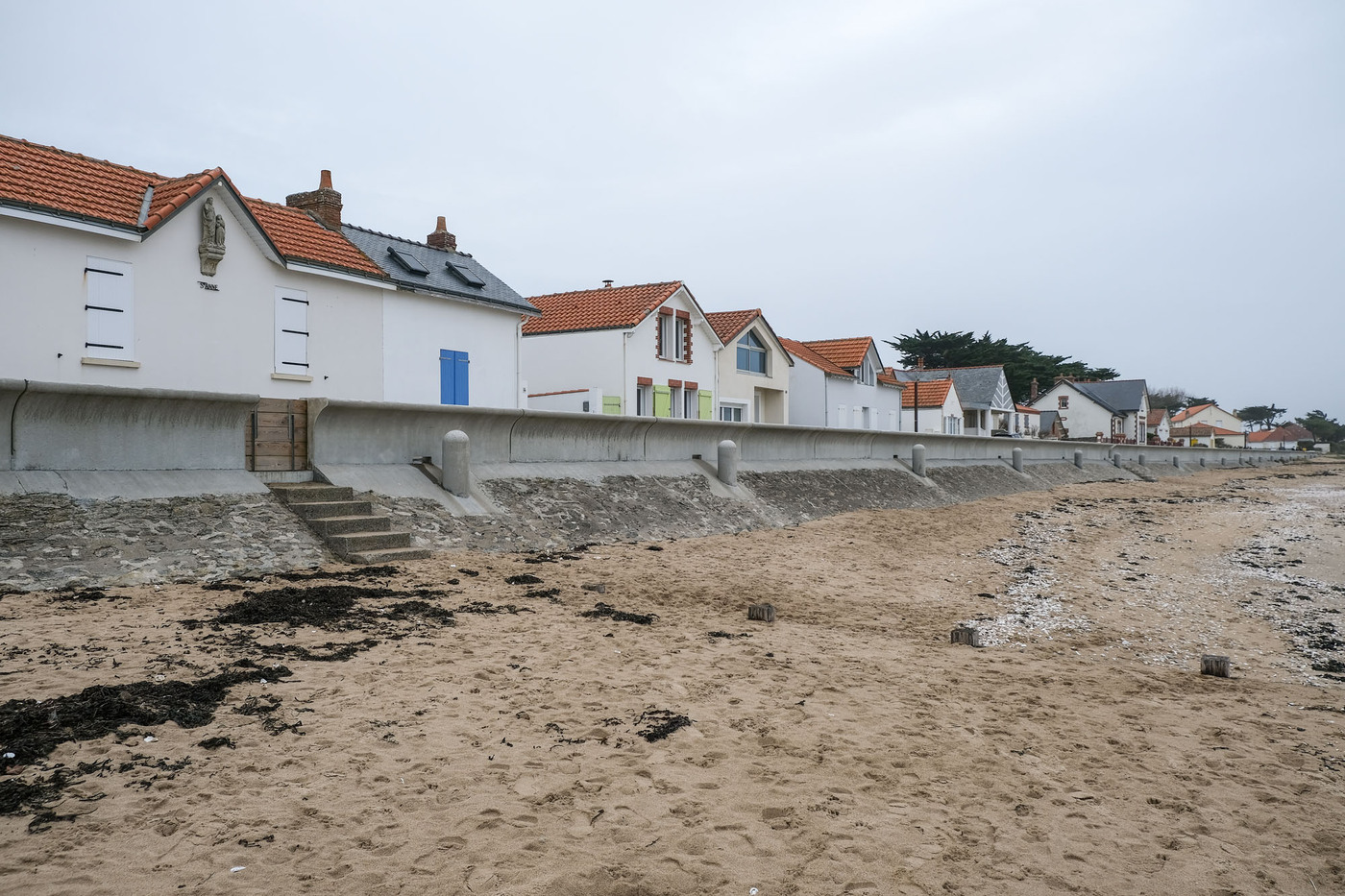 Les Moutiers-en-Retz est une commune rurale, car elle fait partie des communes peu ou très peu denses, au sens de la grille communale de densité de l’Insee. Elle appartient à l’unité urbaine de Pornic. En 2010 la tempête Xintia avait aussi fait de gros dégâts en Loire-Atlantique, particulièrement aux Moutiers-en-Retz. Aussi Sur le boulevard de l’Océan, face à la mer, depuis 2018, le vieux muret a été remplacé par un mur chasse-mer en béton, long de 300 mètres.