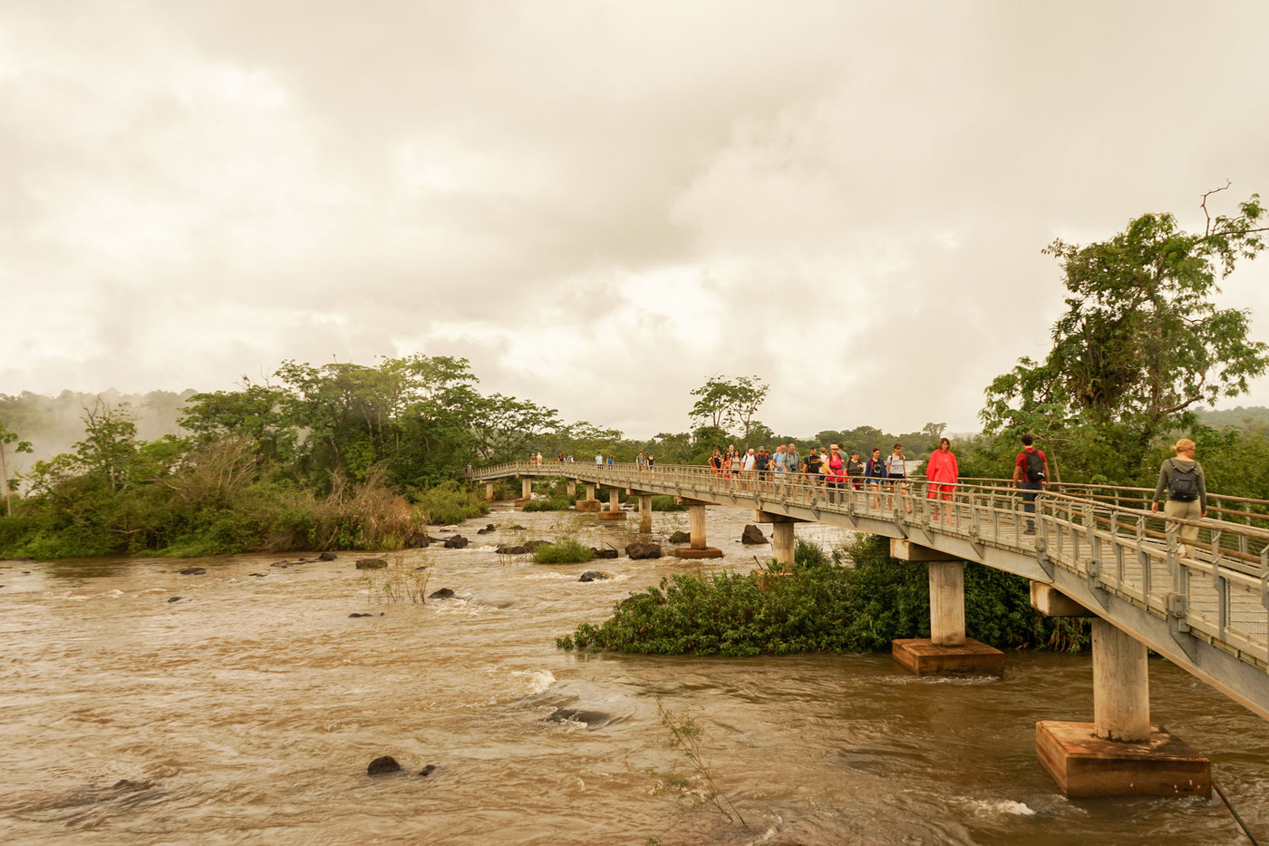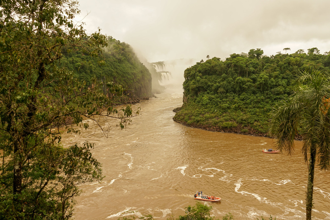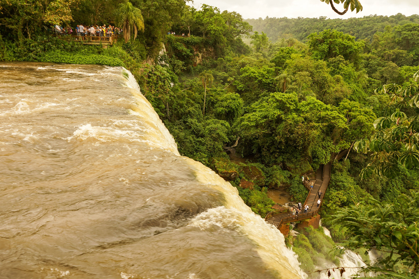 La majorité des chutes sont sur le territoire Argentin. En Argentine, plusieurs circuits de visites ont été aménagés au milieu de la forêt et au-dessus des différentes branches du fleuve, via différentes passerelles. Il est possible de s’approcher à quelques mètres seulement des chutes. Le train écologique de la jungle mène aux différents points de départ des visites, dont la cascade la plus impressionnante, la Garganta del Diablo (en forme de U ; 700 m de long, 150 m de large et 82 m de hauteur). Source Wikipedia