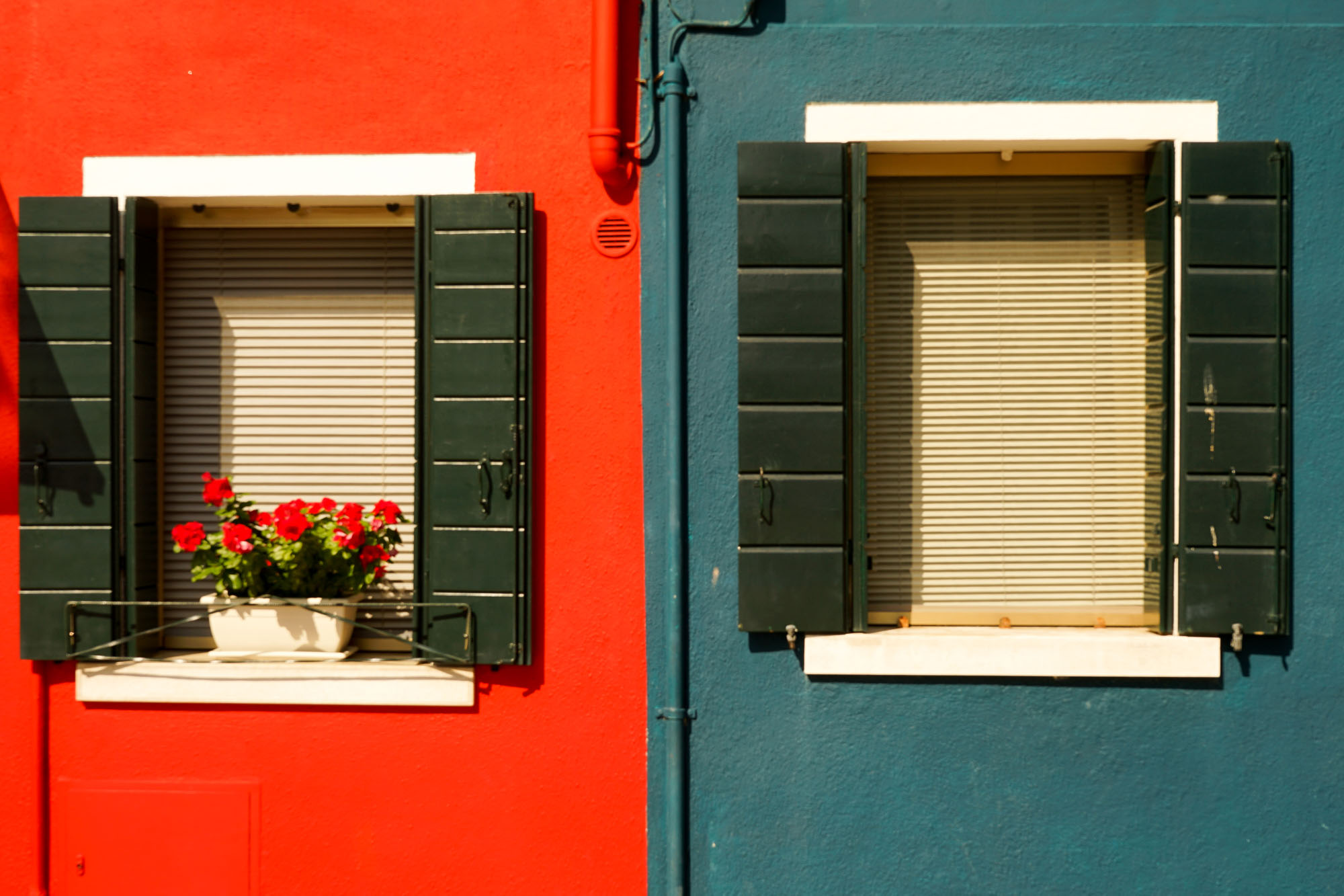 L’obligation faite aux habitants de Burano de repeindre leur maison tous les ans, engendre une palette très variée et des couleurs qui attirent les yeux. Ici on voit le contraste entre murs défraichis et murs récemment repeints.
