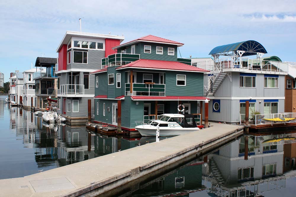 Le concept des maisons flottantes est développé dans plusieurs endroits de Victoria, un moyen lutter contre la montée des eaux annoncée avec le réchauffement planétaire.
