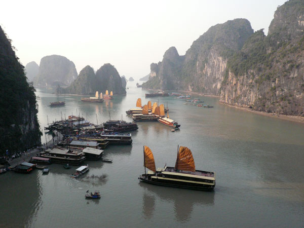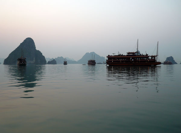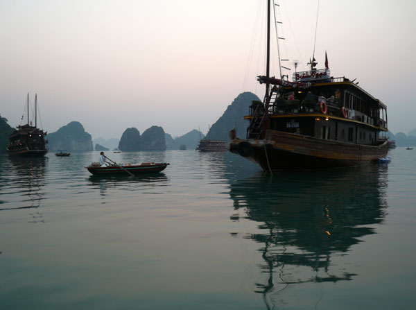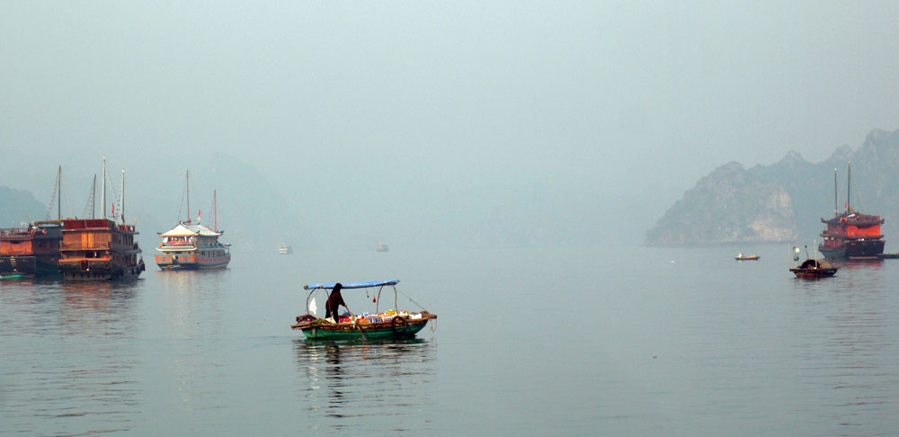 Non loin de la cathédrale Phat Diem un petit château d’eau apparait, on pense aux photos du couple Becher. De retour sur Hanoï, la nuit tombe dans un mauve incroyable sur la rivière des parfums, on s’arrête boire un café au bord de l’eau...